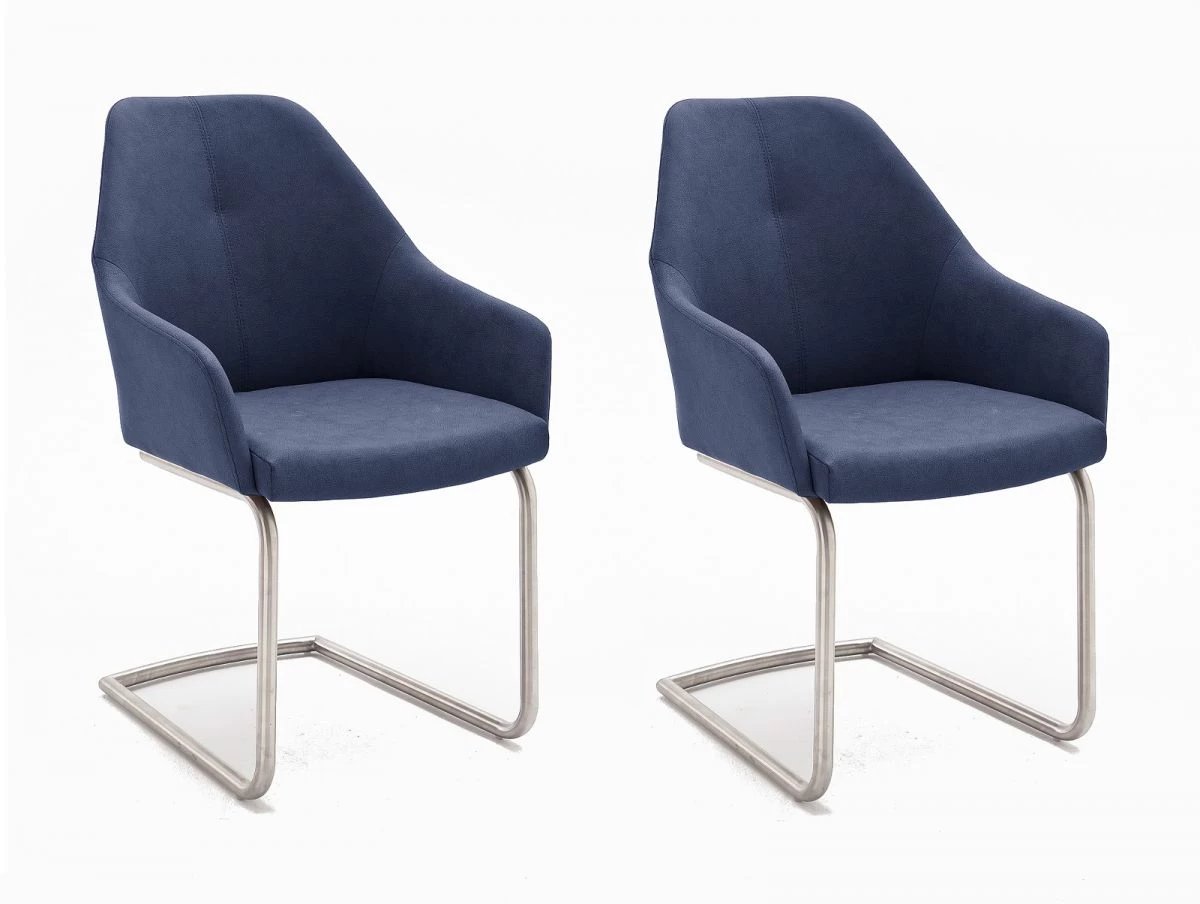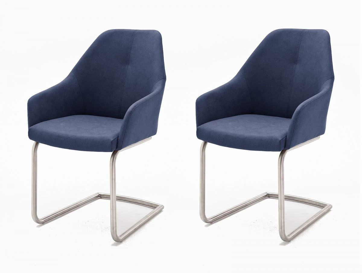 Freischwinger Madita, Kunstleder Nachtblau, mit Armlehnen, 2er Set