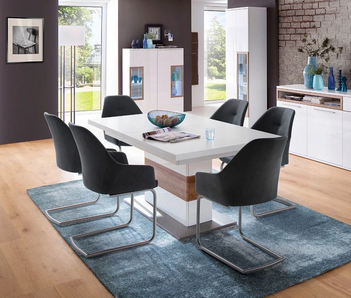 Der Freischwinger „Madita“ in Kunstleder Nachtblau wird Ihr Zuhause bereichern. Das 2er Set hat gemütliche Lehnen, welche die individuelle Wohlfühlposition sichern, und ist für Esszimmer optimal geeignet. Der unempfindliche Stuhl von MCA kann auch optisch durch sein klassisches, elegantes Design überzeugen. Die Nachtblaue Sitz- und Rückenfläche bietet nicht nur durch ihre Form, sondern ebenso durch ihren Überzug aus Kunstleder herausragenden Sitzkomfort. Der gepolsterte Freischwinger verfügt über ein Gestell, das aus Edelstahl gefertigt ist. Sie nehmen auf einer Höhe von 48,0 cm Platz. Das 2er Set „Madita“ aus dem Hause MCA ist mit einer Sitzfläche von insgesamt 47,0 x 44 cm versehen. Es ist 88 cm hoch, 55 cm breit und 62 cm tief. Des Weiteren hat der Freischwinger eine Belastbarkeit von maximal 130 kg und steht in anderen Farbausführungen zur Auswahl. Dieser Esszimmerstuhl verbindet Stabilität mit einem hohen Grad an Sitzkomfort.