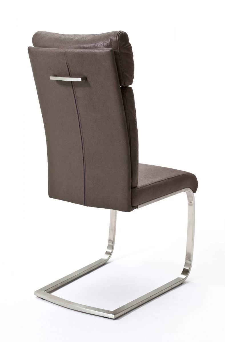 Der Freischwinger „Rabea“ in Lederlook braun vereint funktionalen Nutzen, Qualität und Design. Der Stuhl eignet sich hervorragend für das Esszimmer oder die Küche. Er kann auch optisch durch seinen geschmackvollen Retro-Stil begeistern. Der braune Freischwinger von MCA verfügt über einen Bezug im Lederlook. Das 2er Set „Rabea“ in Lederlook braun weist ein Gestell, welches aus Edelstahl gemacht ist, auf. Es verfügt über eine Sitzfläche von insgesamt 43,0 x 46 cm. Die Komfortsitzhöhe von 49,0 cm macht sich nicht nur beim Sitzen, sondern vor allem auch beim Hinsetzen und Aufstehen bemerkbar. Der Freischwinger hat eine Höhe von 106 cm, eine Breite von 46 cm und eine Tiefe von 62 cm. Der in anderen Farbvarianten verfügbare Stuhl weist außerdem eine Belastbarkeit von maximal 120 kg auf. Dieser Freischwinger verbindet Stabilität mit einem hohen Maß an Sitzkomfort. Das 2er Sett „Rabea“ verfügt darüber hinaus über dieses Extra: der praktische Griff an der Rückenlehne ermöglicht das bequeme Umsetzen des Stuhls.