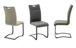 Ihren Essbereich wird dieser Freischwinger bereichern. Das Modell „Zapara“ in olive (2er Set) ist die optimale Wahl für jedes Esszimmer und kann auch optisch durch sein modernes Design überzeugen. Der gepolsterte Stuhl ist dank seines olivfarbenen Bezugs aus Mikrofaser besonders gemütlich. Er verfügt über ein Gestell, welches aus schwarz lackiertem Metall gefertigt ist. Ein praktisches Griffloch an der Rückenlehne ermöglicht das bequeme Umstellen des Stuhls. Das Modell „Zapara“ weist eine Sitzhöhe von 49 cm auf. Der Esszimmerstuhl ist mit einer Sitzfläche von insgesamt 46 x 45 cm ausgestattet. Er weist eine Breite von 45 cm, eine Höhe von 102 cm sowie eine Tiefe von 60 cm auf. Das in verschiedenen Farbausführungen erhältliche Sitzmöbel von MCA ist außerdem für ein Körpergewicht von maximal 120 kg ausgelegt. Dieses attraktive Freischwinger 2er Set ist wird Sie überzeugen.