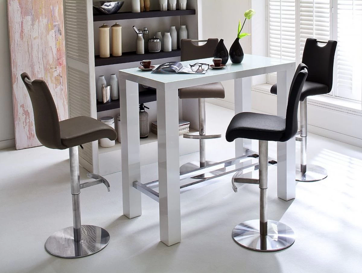 Dieser Barstuhl verbindet ein hohes Maß an Komfort mit Stabilität. Das Modell „Alesi“ in Kunstleder grau verfügt über eine Gasdruckfederung als integriertes Highlight. Es ist dank der manuellen Höhenverstellung eine richtige Oase der Entspannung. Sie werden dank der Drehfunktion viel Freude mit diesem Barhocker haben. Das Modell „Alesi“ des Herstellers MCA findet in Küchen seinen Platz. Der pflegeleichte Barstuhl ergänzt Ihr persönliches Wohlfühlkonzept dank des geschmackvollen, modernen Designs. Die mit Kunstleder bezogene, in schönem Grau gestaltete Sitz- und Rückenfläche rundet die Optik optimal ab. Das Gestell des Barhockers besteht aus Edelstahl. Durch die Komfortsitzhöhe von 56 – 81 cm garantiert der Barstuhl ein angenehmes Sitzerlebnis. Er ist mit einer Sitzfläche von insgesamt 40,0 x 39 cm ausgestattet. Darüber hinaus hat das Modell „Alesi“ eine Höhe von 91 – 116 cm, eine Breite von 42 cm sowie eine Tiefe von 51 cm. Das mit bis zu 120 Kilogramm belastbare Sitzmöbel wird in anderen Farbausführungen angeboten. Dieser Barstuhl überzeugt durch seinen hohen Sitzkomfort. Das Modell punktet außerdem mit der folgenden Eigenschaft: die Griffmulde an der Rückenlehne ermöglicht das einfache Umsetzen.