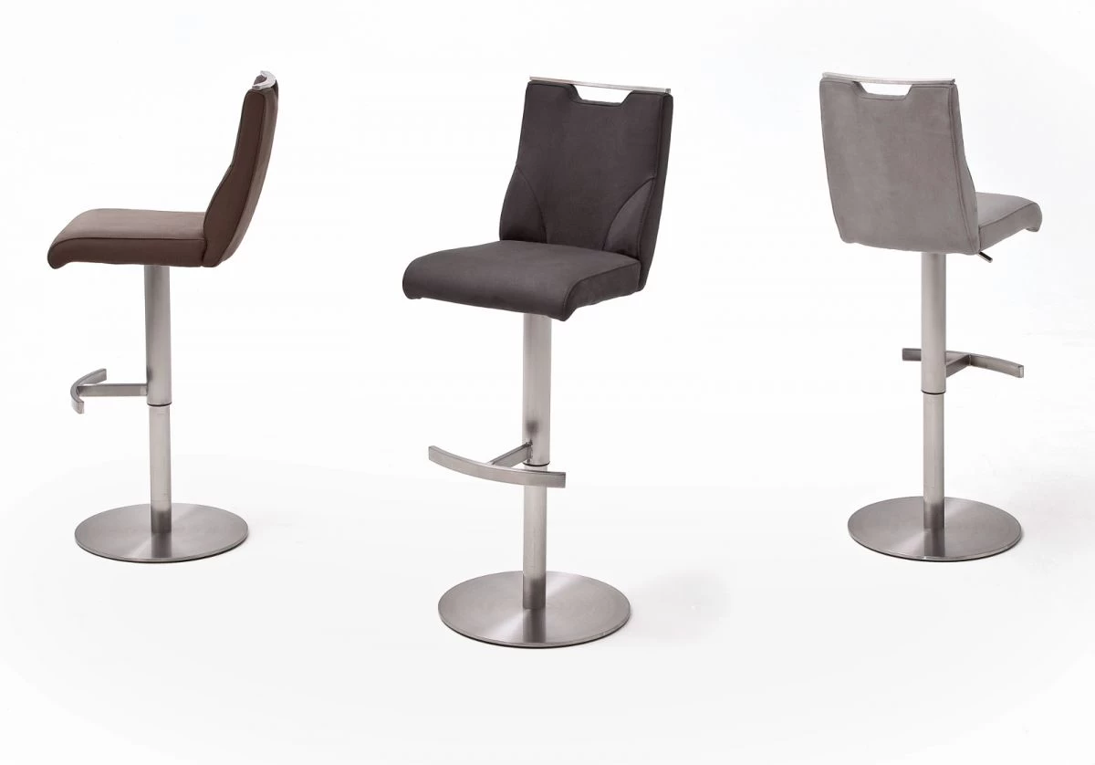 Barstuhl „Giulia“, Leder eisgrau, mit Griffloch, höhenverstellbar