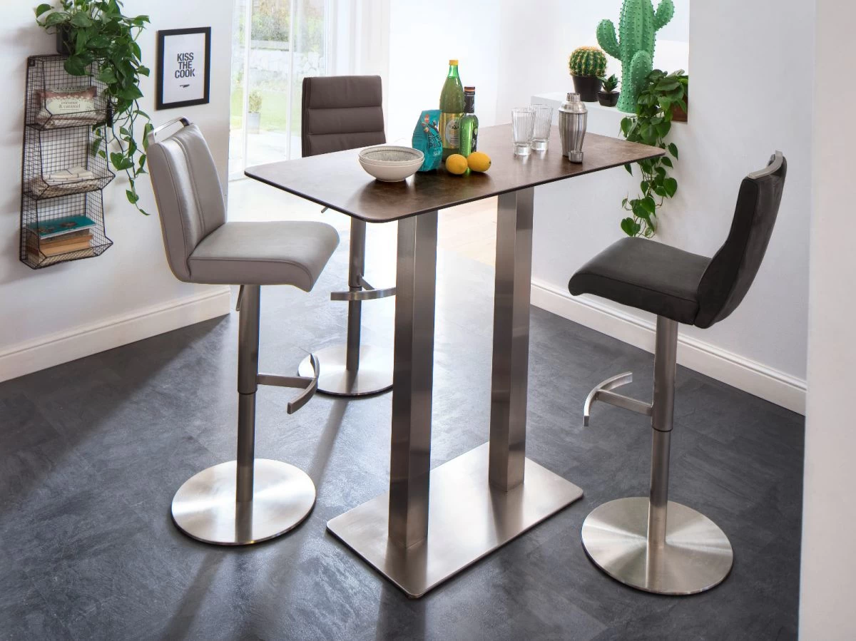 Der Barstuhl „Giulia“ in Leder eisgrau vereint Design, Qualität und funktionalen Nutzen. Der Stuhl ist die optimale Wahl für Ihre Küche. Die manuelle Höhenverstellung verwandelt den Barhocker in Ihren neuen Lieblingsplatz. Der pflegeleichte Stuhl von MCA ergänzt Ihr persönliches Wohlfühlkonzept dank des modernen, eleganten Designs. Die eisgraue Sitz- und Rückenfläche verfügt über einen hübschen Überzug aus Leder und verleiht diesem Barstuhl vortrefflichen Sitzkomfort. Das Modell „Giulia“ hat ein Gestell aus Edelstahl. Die Sitzfläche beträgt insgesamt 38,0 x 39 cm. Für ein angenehmes Sitzgefühl verfügt der Barstuhl „Giulia“ über eine Komfortsitzhöhe von 53 – 78 cm. Das Sitzmöbel hat eine Höhe von 88 – 113 cm, eine Breite von 39 cm und eine Tiefe von 50 cm. Außerdem kann der mit maximal 120 Kilo belastbare Stuhl in weiteren Farbvarianten ausgesucht werden. Dieser Barhocker in der Farbe Eisgrau wird Ihr Zimmer bereichern. Das Modell „Giulia“ überzeugt des Weiteren dank der folgenden Besonderheit: das Griffloch an der Rückenlehne ermöglicht das einfache Umsetzen des Stuhls.