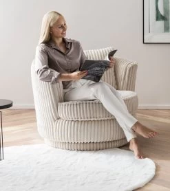 Drehsessel „Comfy“, wollweißer Mega-Cord, 360° drehbar