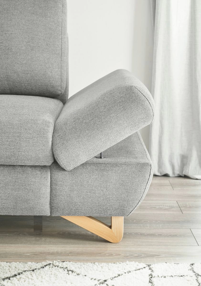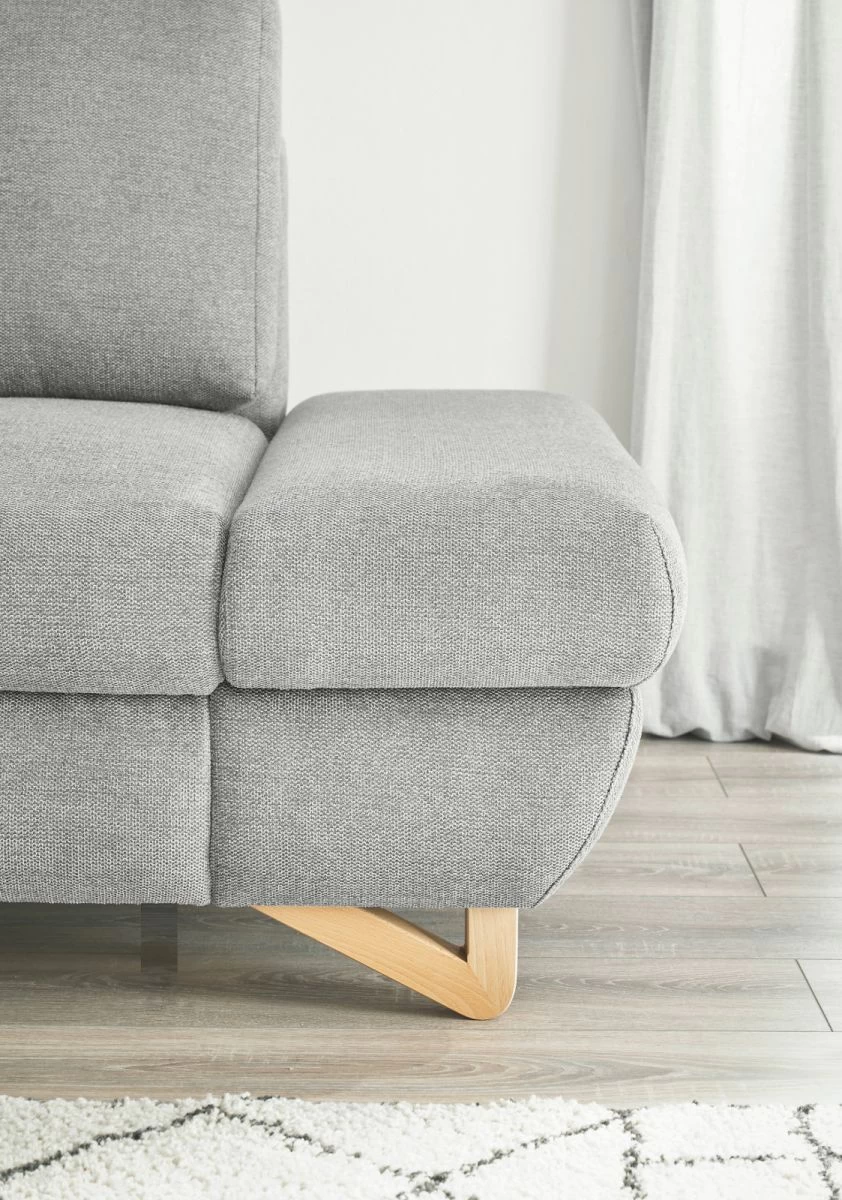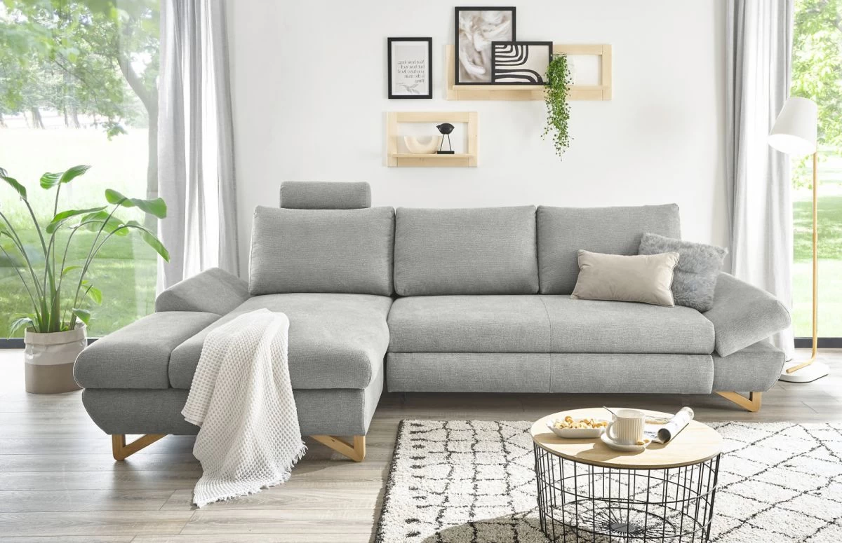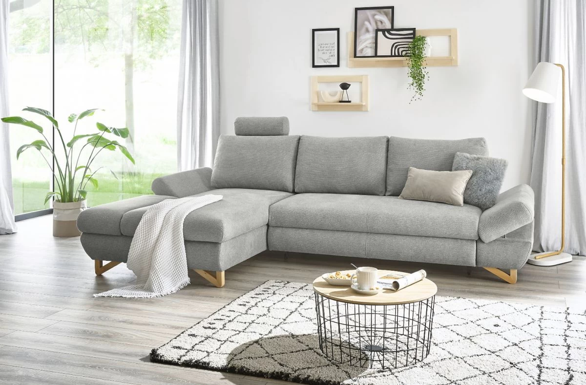 Das Ecksofa „Skalm“ von Furn.Design ist die perfekte Ergänzung für dein Wohnzimmer. Mit seiner Recamiere links bietet es dir viel Platz zum Entspannen und Wohlfühlen. Die Kopfstütze können Sie ganz nach Ihren Bedürfnissen frei positionieren und die Armlehnen manuell verstellen, um den optimalen Komfort zu erreichen – beim Sitzen und beim Liegen. Dank der dauerhaft elastischen Wellenunterfederung wirst du immer eine angenehme Sitzposition finden. Das Ecksofa „Skalm“ besticht nicht nur durch seine Funktionalität, sondern auch durch sein ansprechendes Design. Die Füße aus Massivholz verleihen dem Sitzmöbel eine natürliche Note und der Bezug aus strapazierfähigem Strukturstoff in Hellgrau ist nicht nur zeitlos, sondern auch abriebfest, pilling- und scheuerbeständig. Ein weiterer Pluspunkt dieses Sofas ist die hohe Belastbarkeit von maximal 350 kg. Sie können sich also bedenkenlos darauf niederlassen und gemütliche Stunden verbringen. Die Rückseite ist ebenfalls mit dem Originalbezug versehen, sodass es sich frei im Raum platzieren lässt. Mit dem Ecksofa „Skalm“ holen Sie sich Qualität und Komfort nach Hause. Vertrauen Sie auf die Marke Furn.Design und machen Sie Ihr Wohnzimmer zu einer echten Wohlfühloase. Bestellen Sie jetzt!