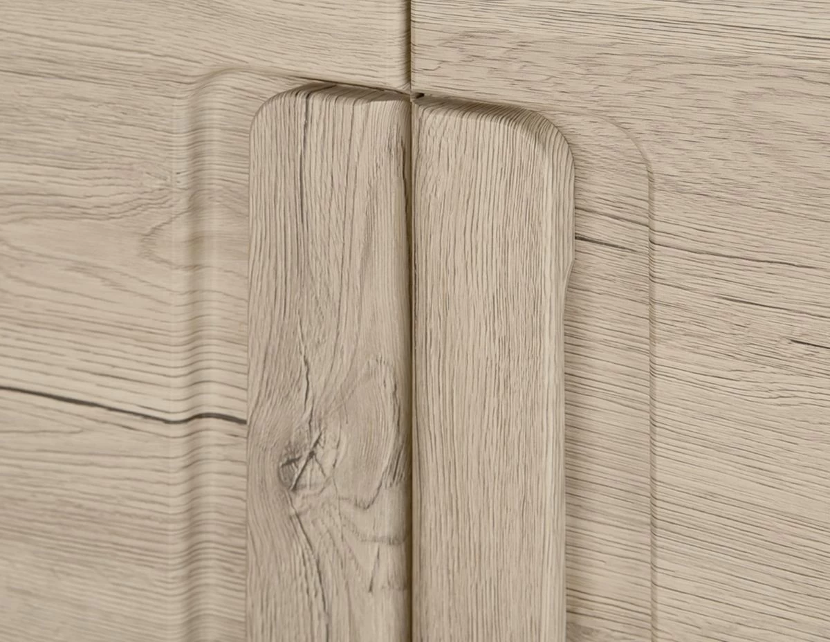 Das Flur Garderobe Set „Malea“ Eiche San Remo hell Komplettset 6-teilig ist in einem angesagten Naturstil gestaltet. Die gemaserte Holzoptik in bester 3D Struktur zieht automatisch immer wieder die Blicke auf sich. Dazu gesellen sich moderne Holzgriffleisten in Griffmulden, die dem Öffnen und Schließen der verschiedenen Türen dienen. Im Innern des mehrteiligen Sets lassen sich Mäntel und Jacken, Schirme und Schuhe, Mützen und Taschen verstauen. Türen und Schübe öffnen und schließen dank der hochwertigen Scharniere sanft und leise.