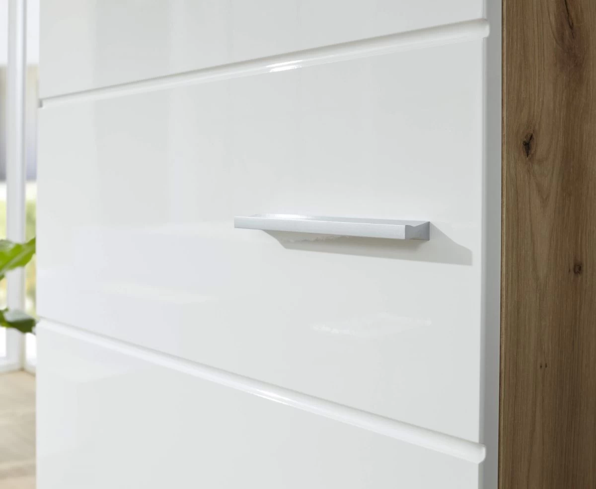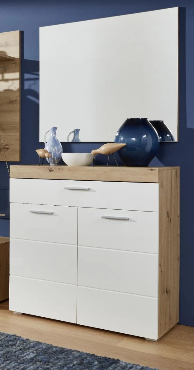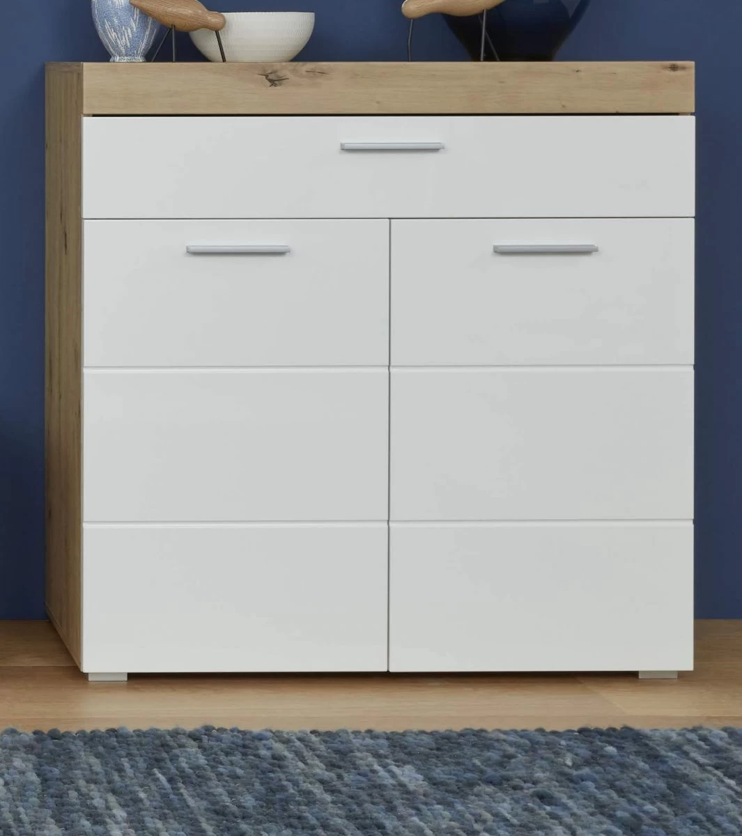 Schuhkommode „Amanda“, weiß Hochglanz und Eiche, 91 x 97 cm