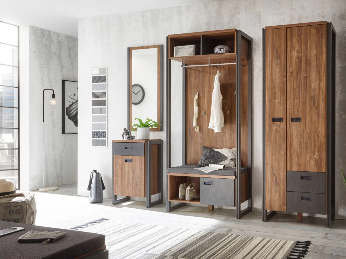 Garderobe „Auburn“, Eiche Stirling und Matera grau, mit Sitzkissen, 90 x 202 cm