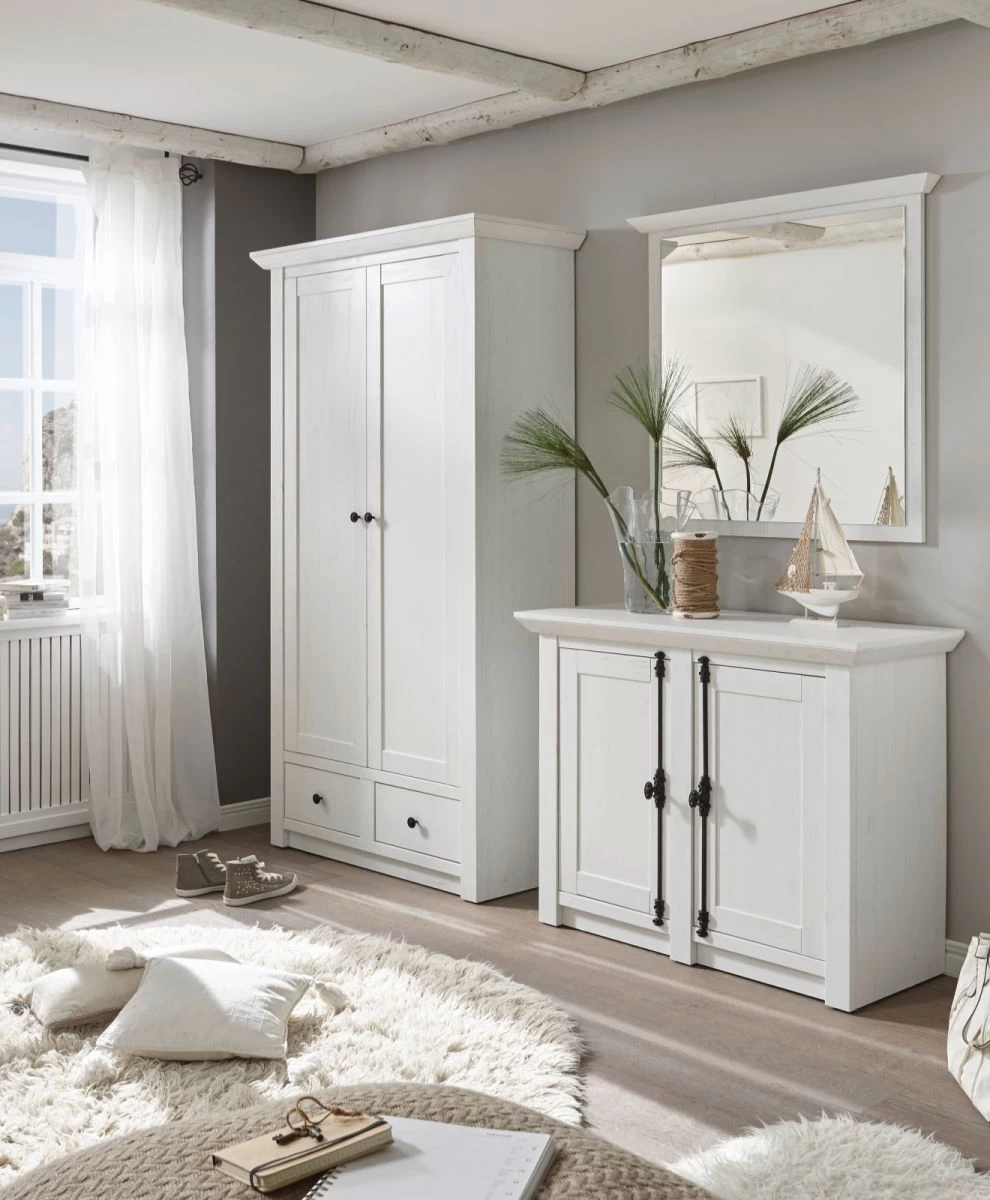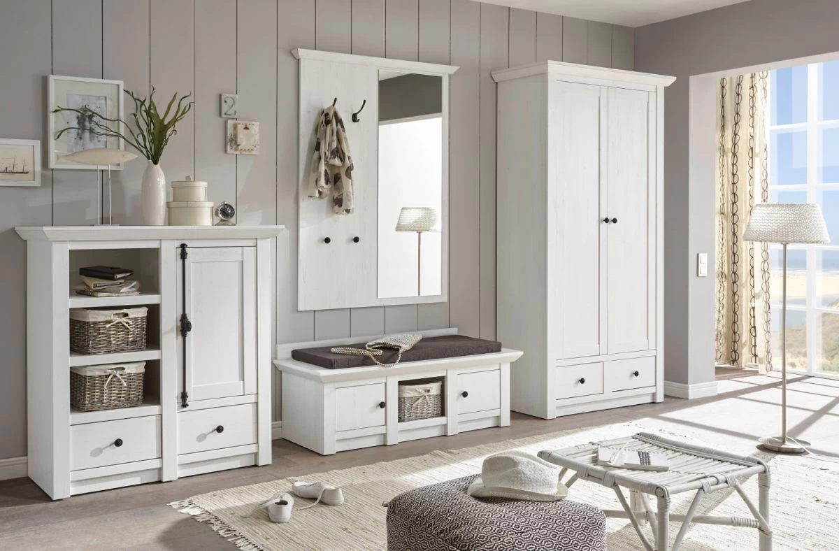 Das 3-teilige Garderobenset „Hooge“ kombiniert Helligkeit mit Landhausstil.