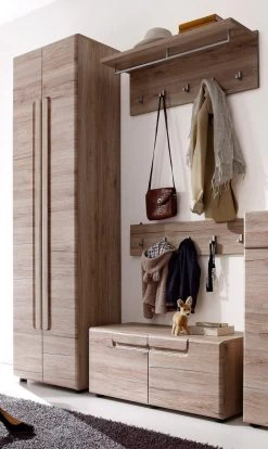 Das Garderoben Set „Malea“ 4-teilig in Eiche San Remo (168 x 191 cm) ist eine Bereicherung für Ihren Eingangsbereich. Der Flurschrank bietet zwei Türen und überzeugt mit einer Kleiderstange. Nutzen Sie den Platz von bis zu sieben Einlegeböden. Neben dem Flurschrank sind eine Garderobenbank mit zwei Einlegeböden und ein Wandspiegel im Set enthalten. Zwei Garderobenpaneele halten eine Hutablage, eine Kleiderstange sowie zehn Kleiderhaken zur Aufbewahrung bereit. Dank der unempfindlichen Beschaffenheit werden Sie lange Freude an dieser Garderobenkombination haben. Das Modell „Malea“ wurde aus FSC®-zertifiziertem Material aus nachhaltiger Forstwirtschaft hergestellt. Das 4er Set in der Farbe San Remo Eiche Dekor bereichert Ihr persönliches Einrichtungskonzept durch das natürliche, moderne Design zusätzlich. Es nimmt insgesamt 35,0 x 191,0 x 168,0 cm ein und kann in anderen Größenausführungen gewählt werden. Die 4-teilige Garderobe von Trendteam ist ein absoluter Gewinn für alle Freunde schöner Eingangsbereiche.
