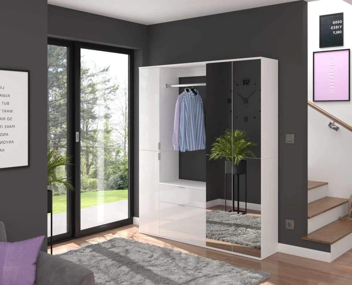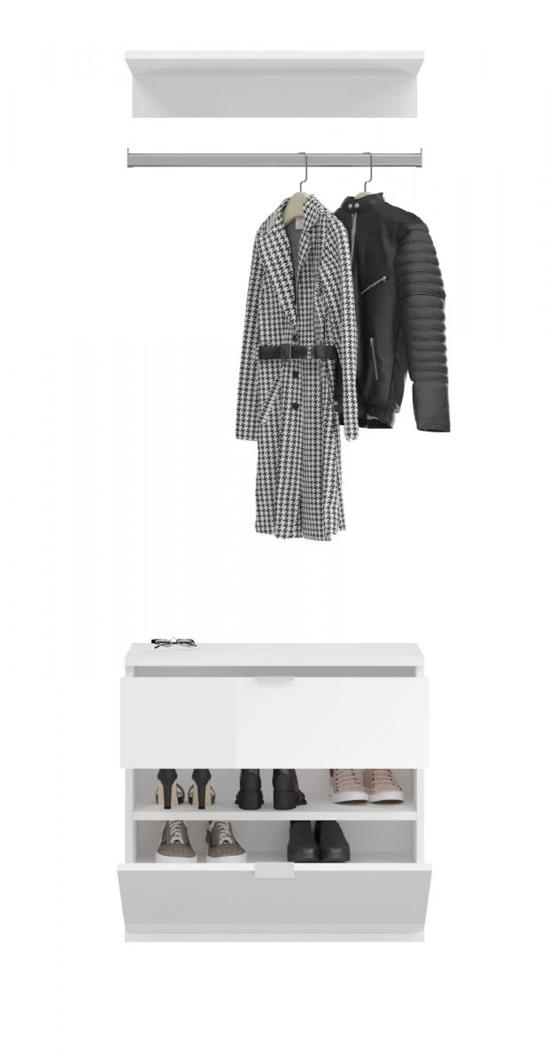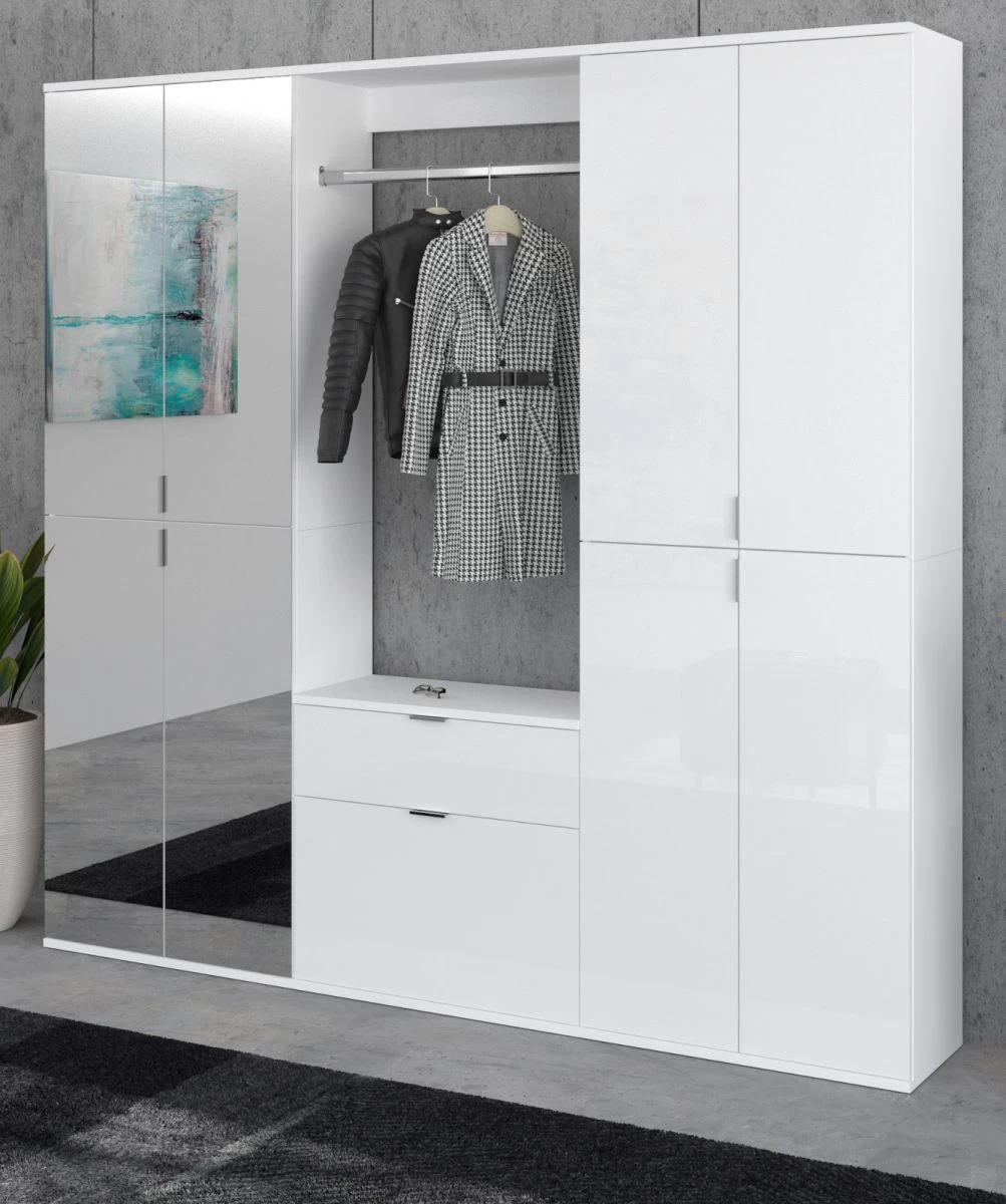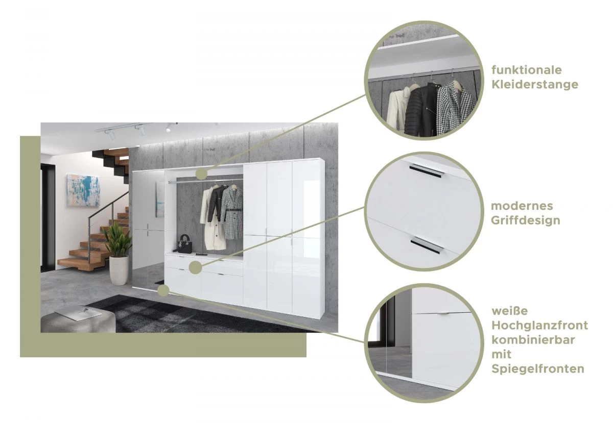 Garderobe Set „ProjektX“, weiß Hochglanz, Systemmöbel 3-teilig, 61 cm
