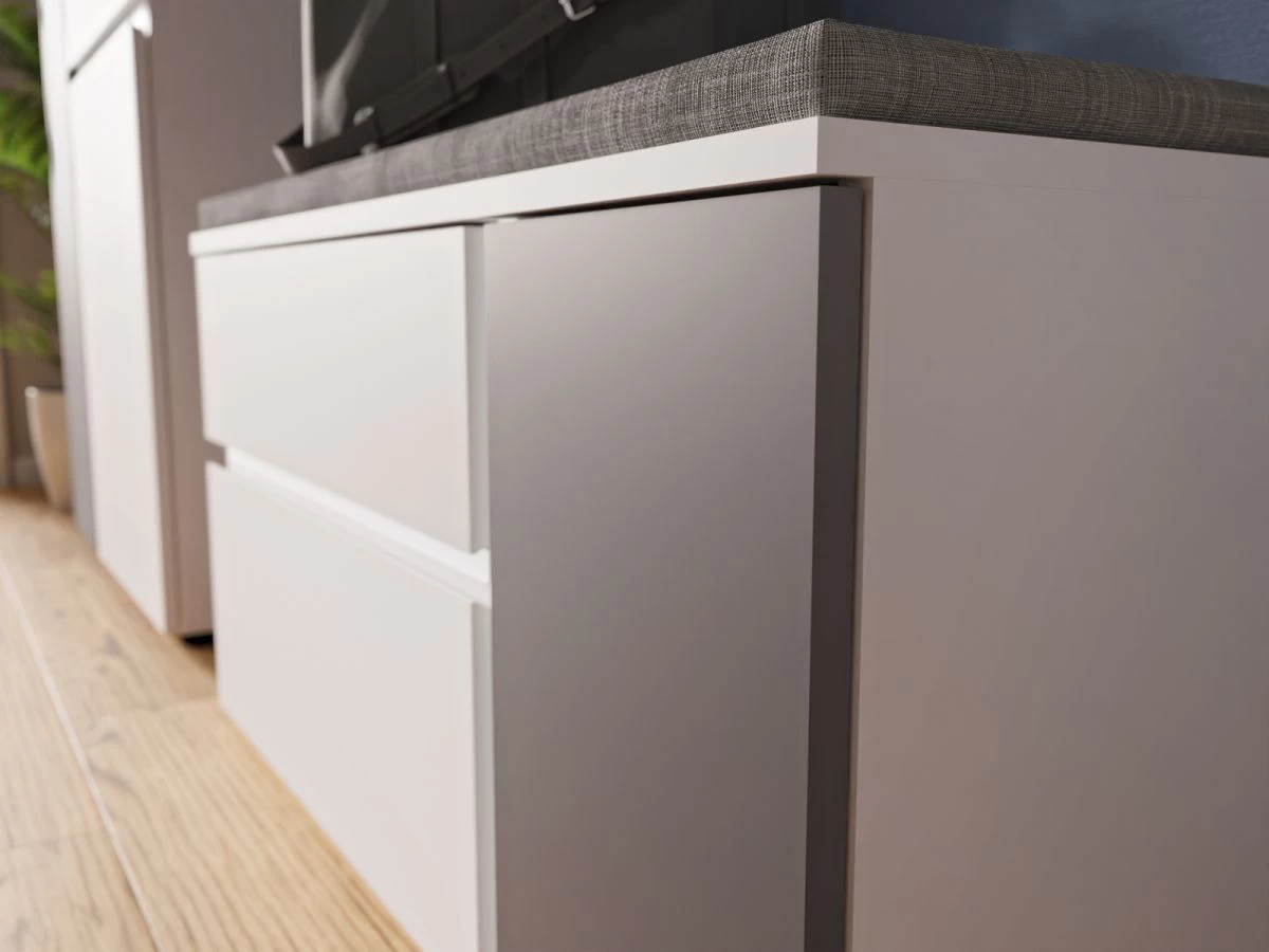 - Garderobenbank Klappe mit Gasdruckdämpfer ausgestattet