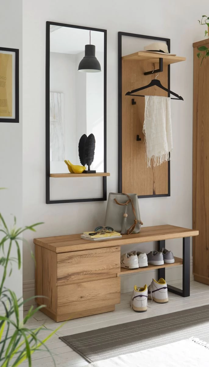 Garderobe „Yorkshire“, Crack Eiche und schwarz matt lackiert, 3-teilig, 108 x 195 cm