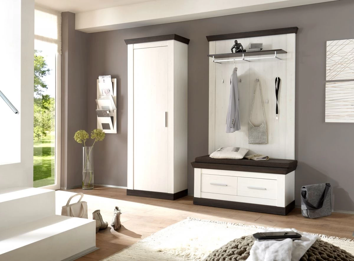 Im modernen Landhausstil – so präsentiert sich die 4-teilige Garderobenkombination „Corela“.