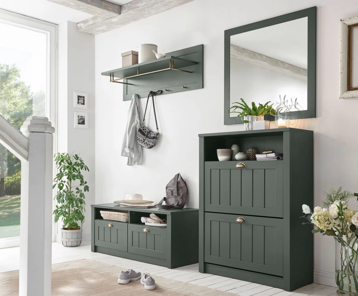 Garderobenkombination „Forres“, grün, Landhausstil, Garderoben Set 4-teilig, 212 x 198 cm