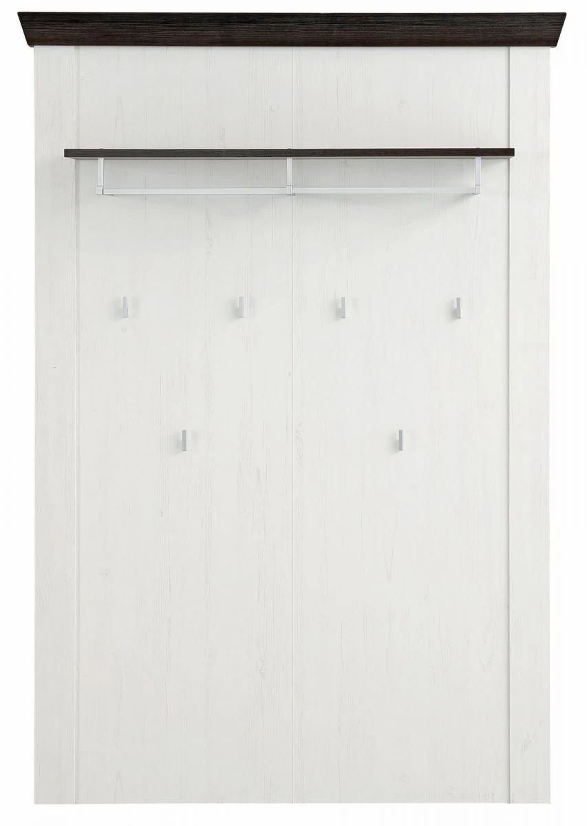 Durch die natürliche Holzoptik mit Kontrastfarben setzt sie den Flur behaglich in Szene. Zudem bietet die Wandgarderobe reichlich Platz für Jacken und Mäntel. Neben der Kleiderstange ist sie noch mit etlichen Haken sowie einer Hutablage ausgestattet. Haken und Kleiderstange sind aus Metall gearbeitet, was für Stabilität sorgt und einen reizvollen Kontrast zu der Holzoptik darstellt. Für die Fertigung des Garderobenmöbels wird FSC®-zertifizierter Holzwerkstoff verwendet.