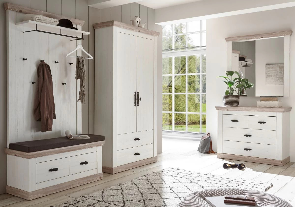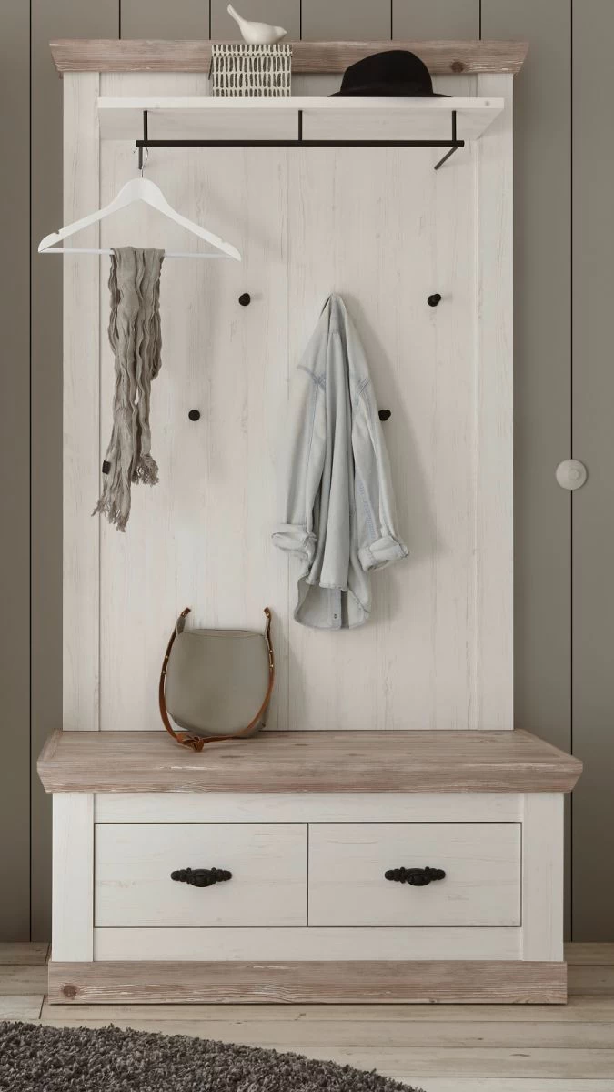 - Paneel und Hutablage in Pinie weiß Dekor