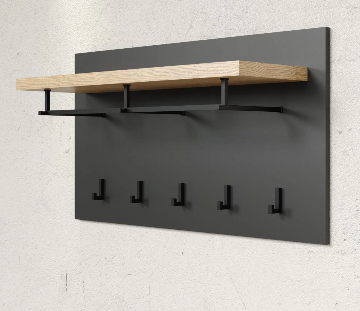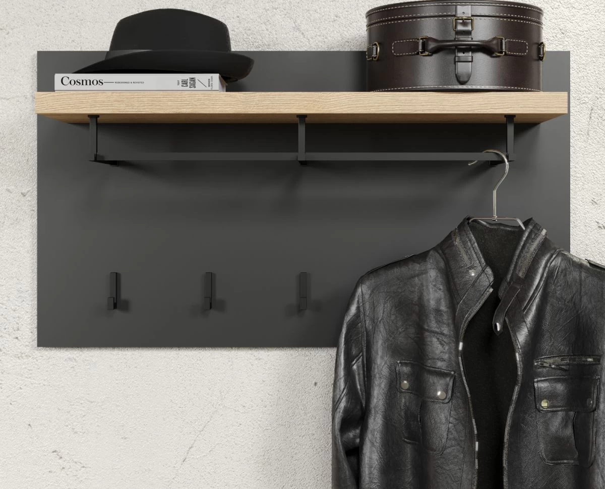 Garderobenpaneel „Synnax“, grau und Evoke Eiche Dekor, 90 x 50 cm