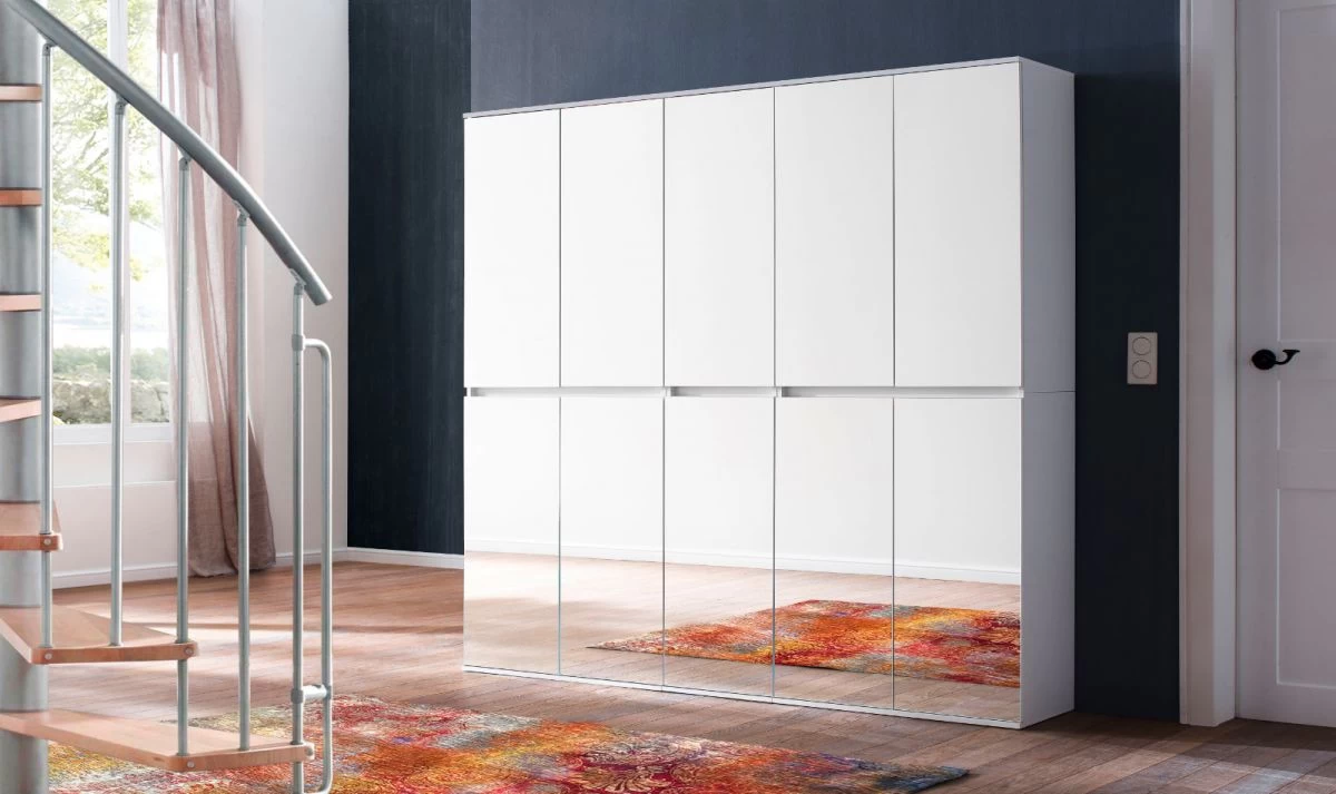 - Zeitloser Garderoben- und Schuhschrank mit Spiegelfronten
