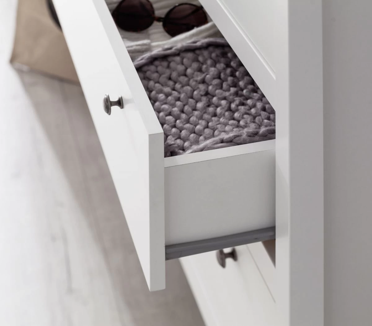 Der Schrank bietet neben einer herausnehmbaren Schublade mit Unterflurführung hinter der sowohl links als auch rechts montierbaren Tür mit großem Spiegel einen Ablageboden mit praktischer, ausziehbarer Kleiderstange. So können Jacken und Mäntel bequem und einfach aufgehängt und auch wieder entnommen werden. Die abschließende Oberfläche des Schranks können Sie als Hutablage, für passende Dekorationen oder für das Positionieren von Zimmerpflanzen nutzen. Besonders flexibel entworfen, kann „Ole“ auch durch 6 weitere Einlegeböden ergänzt und so beispielsweise als großer Schuhschrank genutzt werden. Sie bestimmen selbst, welchem Zweck der Flurschrank dient und haben die Möglichkeit, ihn wechselnden Anforderungen anzupassen. Durch eine bebilderte Anleitung gelingt Ihnen der Aufbau des einfach zu reinigenden, pflegeleichten Garderobenschranks im Handumdrehen.