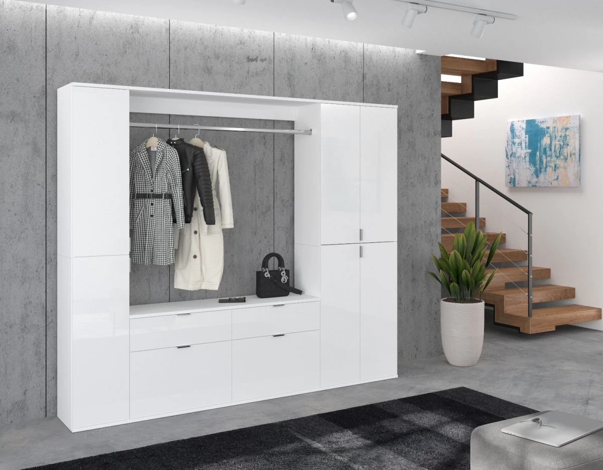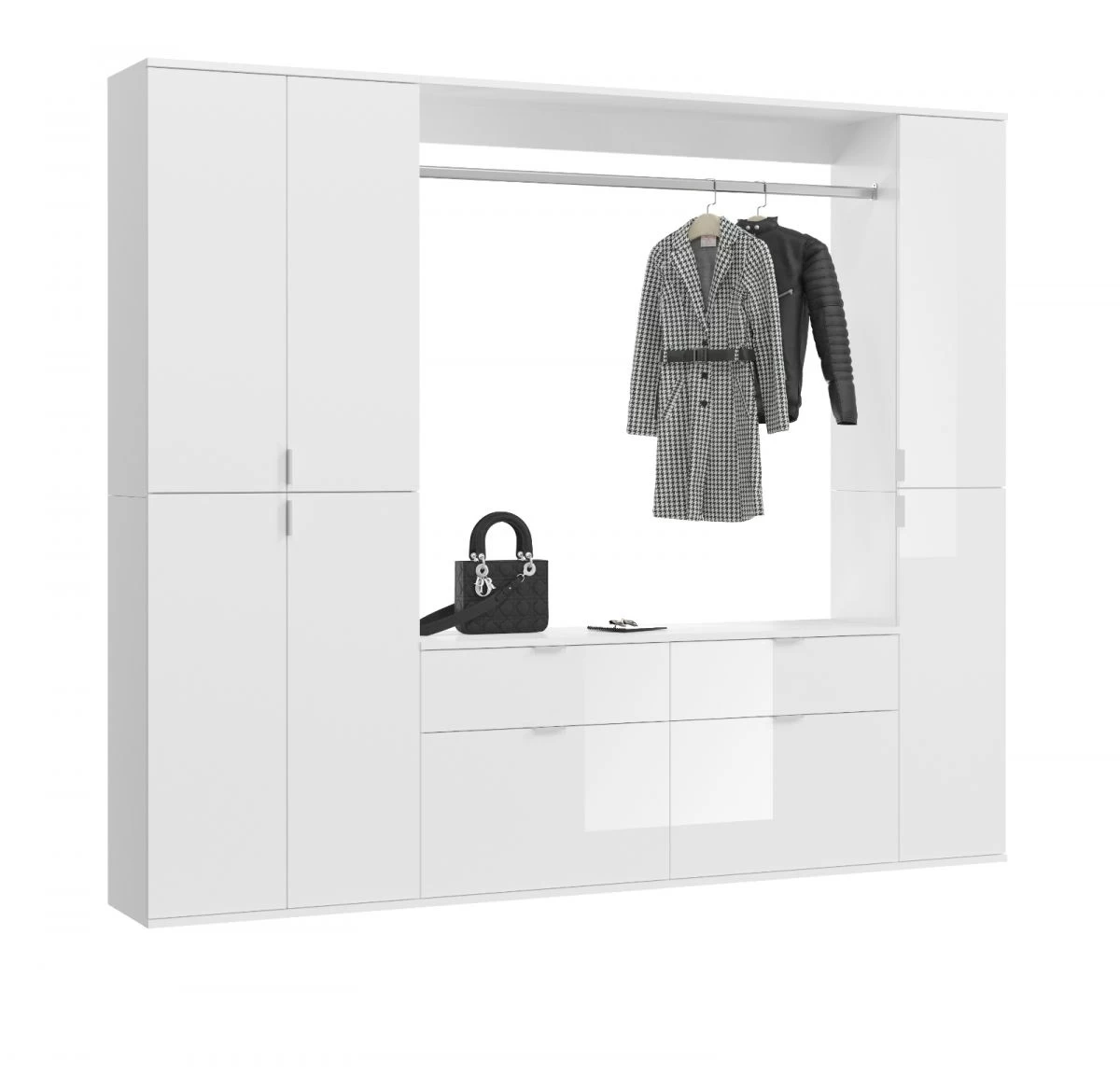 Garderobenschrank „ProjektX“, weiß Hochglanz, Systemmöbel 3-teilig, 212 x 193 cm