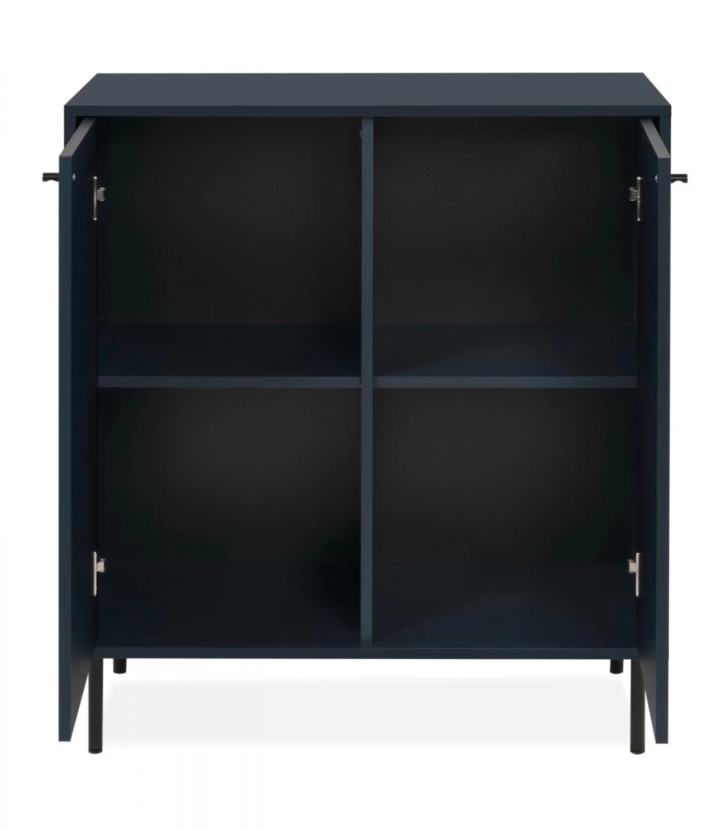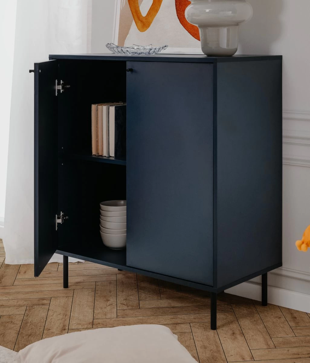 Die Kommode „Caracas“ von Finori ist ein stilvolles Möbelstück für Ihr Wohn- oder Esszimmer oder den Flur. In einem schönen Blauton gehalten, wird sie mit schwarzen Knopfgriffen aus Metall und 14 cm hohen, justierbaren Metallfüßen geliefert. Mit zwei Türen und vier geschlossenen Fächern bietet sie ausreichend Stauraum. Die Maße von 80 x 90 x 40 cm machen sie zu einer praktischen Ergänzung für jeden Raum. Bestellen Sie die Kommode „Caracas“ noch heute und freuen Sie sich auf ein außergewöhnliches Möbelstück!