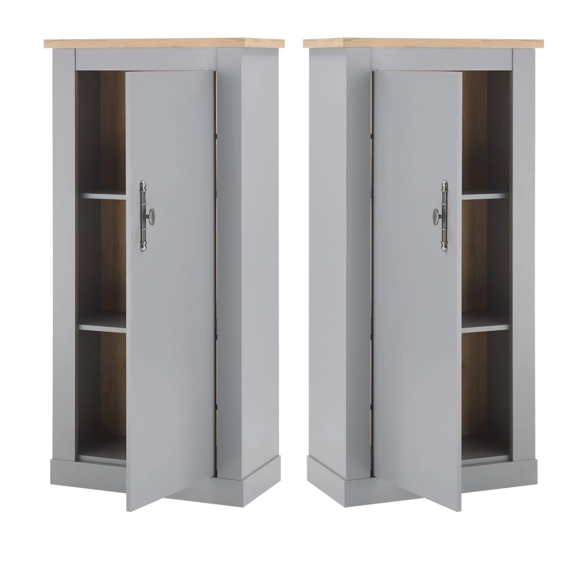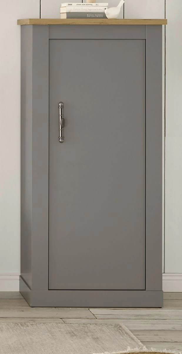 Sie werden die Kommode „Rideau“ in grau und Artisan Eiche (68 x 142 cm) lieben. Das Möbelstück eignet sich ideal für jedes Wohn- sowie Esszimmer und erweitert mit ihrer Tür Ihren Stauraum. Es ist mit zwei Einlegeböden versehen. Das Modell „Rideau“ kann auch optisch durch sein modernes, ländliches Design überzeugen und ist aus FSC®-zertifiziertem Holz gefertigt. Dank der pflegeleichten Beschaffenheit erweist sich das Stauraummöbel in der Farbe Grau und im Dekor Artisan Eiche als äußerst praktisch. Es hat eine Breite von insgesamt 68 cm, eine Höhe von 142 cm und eine Tiefe von 37 cm. Das Modell „Rideau“ besticht mit einem in einem Silber-Farbton gehaltenen Metallgriff im Antik-Look. Diese Kommode verleiht jedem Zuhause eine heimelige Landhaus-Atmosphäre.