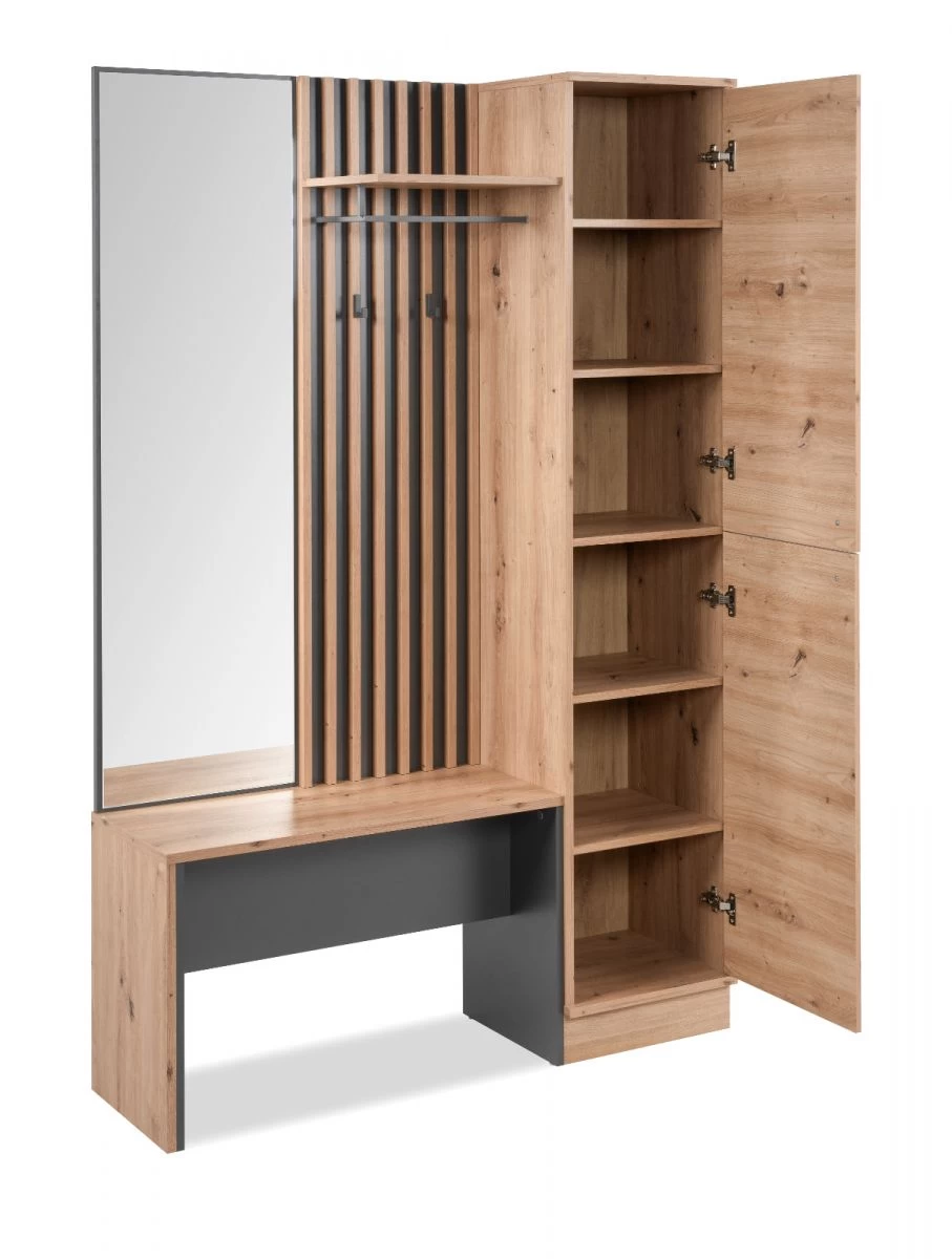 Kompaktgarderobe „Medan“, Artisan Eiche Dekor und Anthrazit, Industrial, Look, 122 x 190 cm