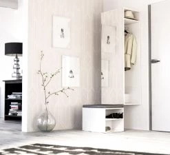 Garderobe „Brighty“ In Weiß Set 2-tlg. Mit Spiegel Und Sitzhocker Gepolstert 50 X 190 Cm