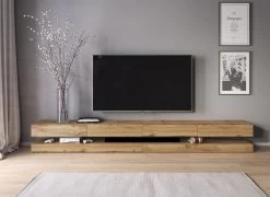 TV-Lowboard „Bird“ In Wotan Eiche TV-Unterteil 4-teilig XXL-Board 280 Cm Hängend Inkl. Beleuchtung