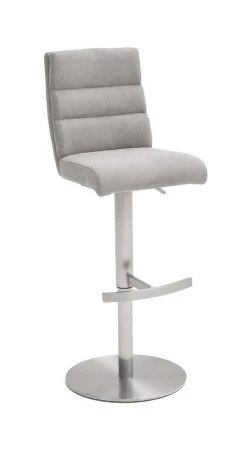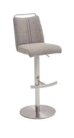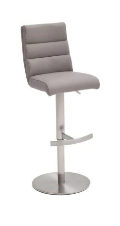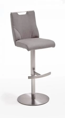 Barstuhl „Giulia“ In Eisgrau Leder Und Edelstahl Gebürstet Barhocker Mit Griffloch Höhenverstellbar