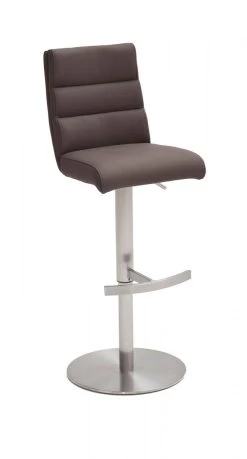 Barstuhl „Giulia“ In Braun Leder Und Edelstahl Gebürstet Barhocker Mit Griff Hinten Höhenverstellbar