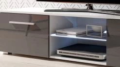 TV Lowboard „Earth“ In Weiß Hochglanz Mit LED Beleuchtung 100 X 36 Cm