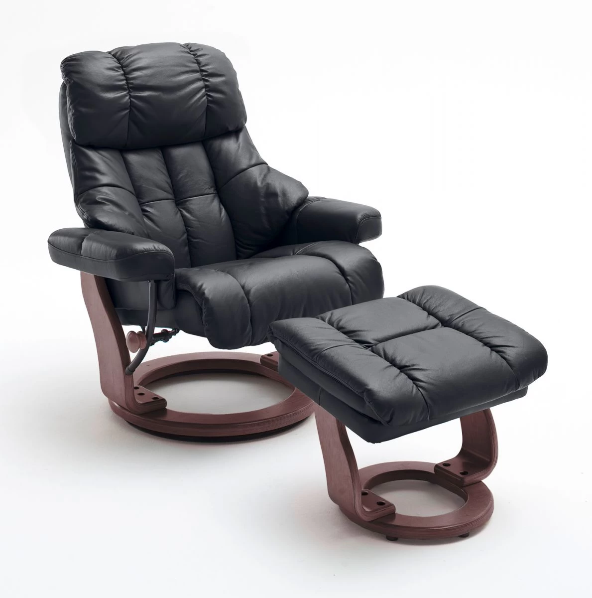 Relaxsessel „Calgary XXL“, Schwarz Leder und Walnuss, 97 x 110 cm