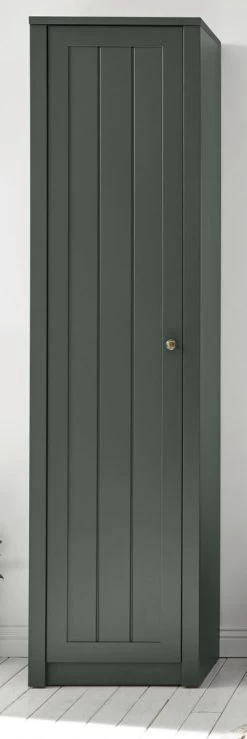 Der Schuhschrank „Forres“ in grün (50 x 197 cm) bietet Ihnen die Möglichkeit, Ihre Schuhe perfekt zu ordnen. Der Schuhschrank ist mit vier Einlegeböden versehen. Er weist eine Tür auf, hinter der Schuhe und Stiefel untergebracht werden können, findet in jedem Eingangsbereich seinen Platz und überzeugt in der Farbe Grün. Dank der besonders strapazierfähigen und unempfindlichen Beschaffenheit werden Sie lange Freude an diesem Möbelstück haben. Das Modell „Forres“ kann auch optisch durch seinen ländlichen sowie modernen Stil überzeugen, wurde aus FSC®-zertifiziertem Material aus nachhaltiger Forstwirtschaft hergestellt und ist mit einer ansprechenden Griffmulde in Antik-Optik aus Metall versehen. Der Schuhschrank hat eine Breite von 50 cm, eine Gesamthöhe von 197 cm sowie eine Tiefe von 43 cm. Dieser Schuhschrank ist eine nützliche Bereicherung für Ihren Flur.