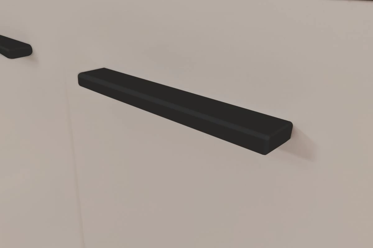 - Front und Korpus in samtfarben Dekor, mit ABS-Kante