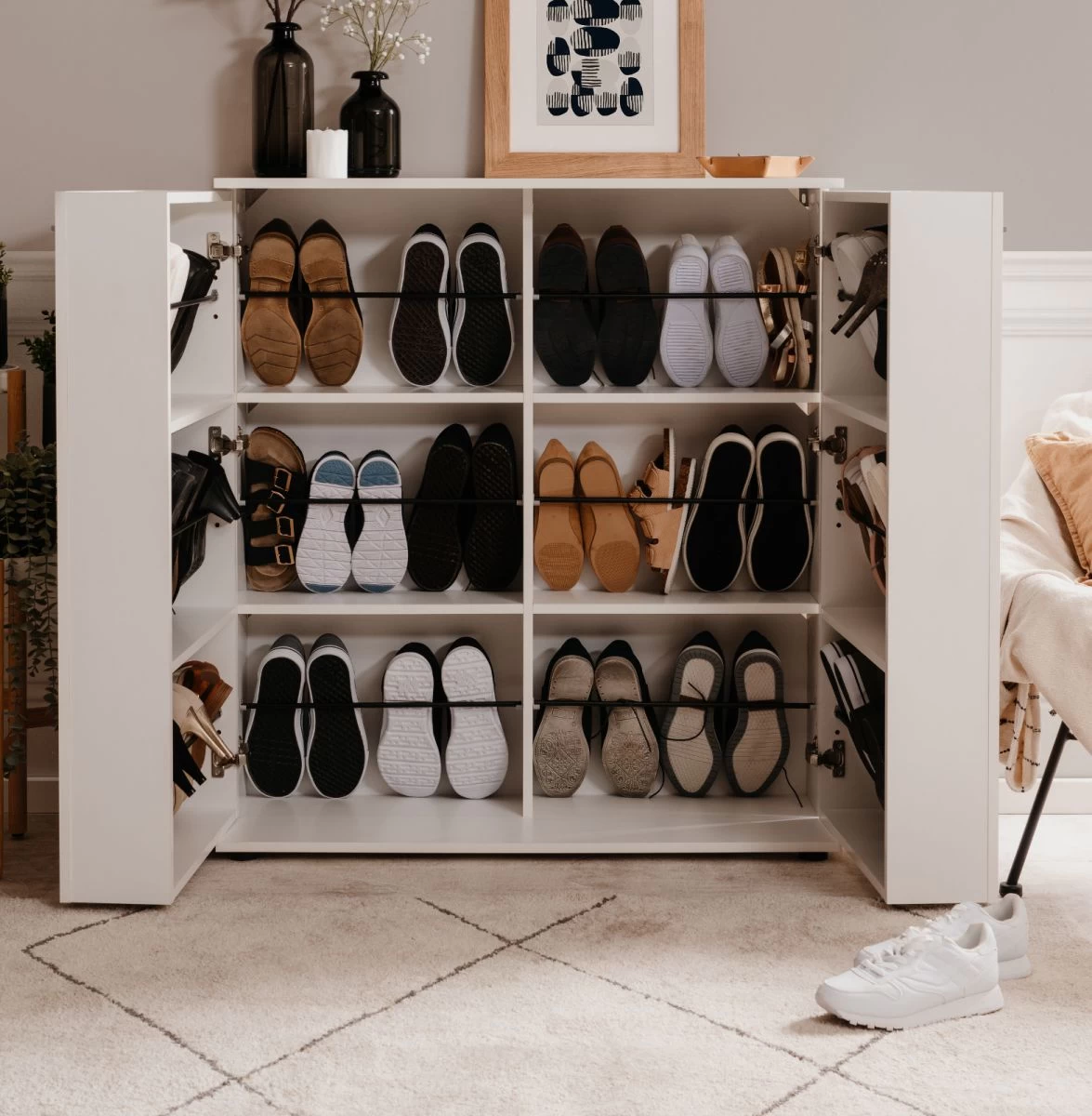 - geeignet für bis zu 24 Paar Schuhe aller gängigen Größen