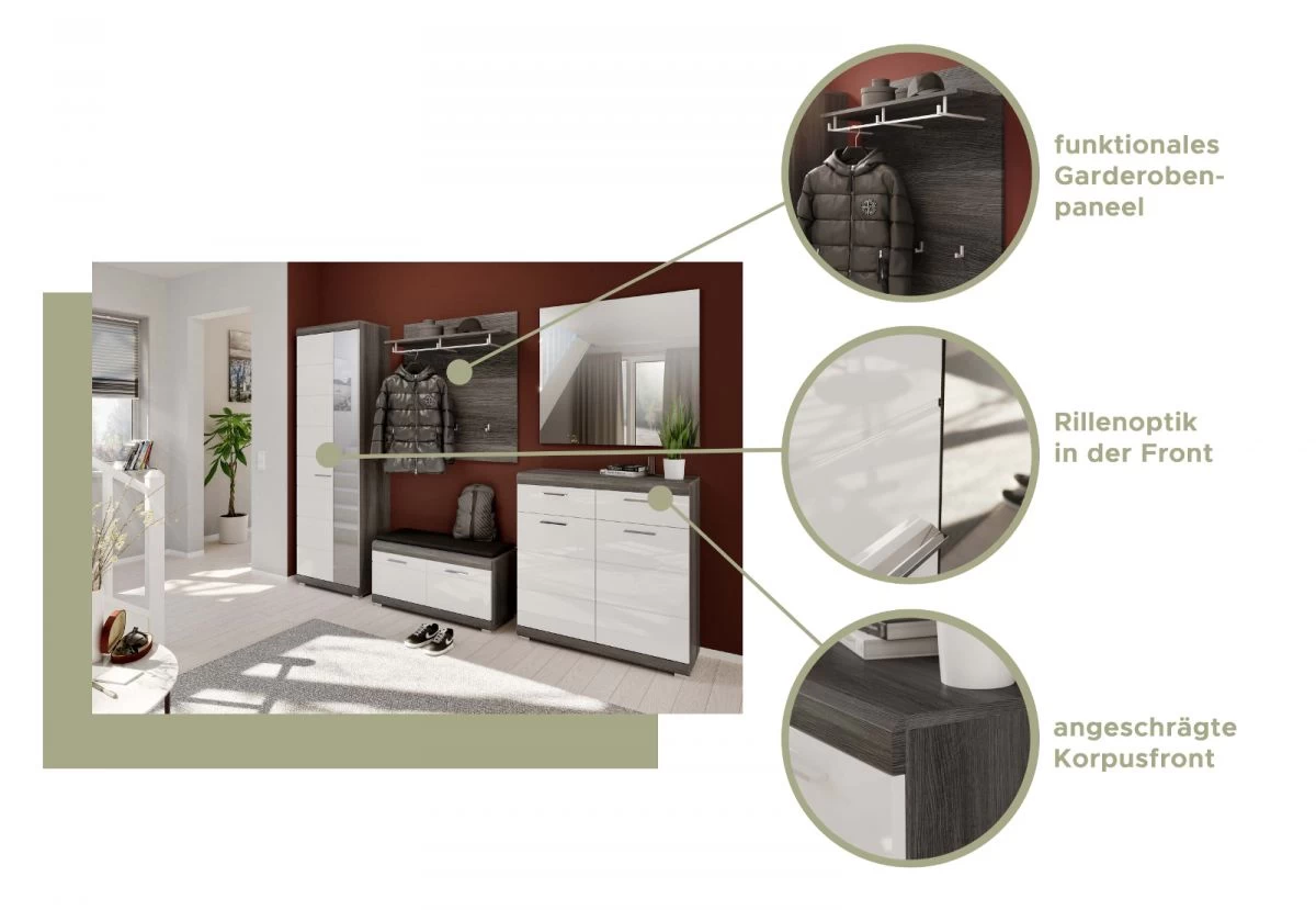 Schuhschrank „Scout“, weiß Hochglanz und Rauchsilber grau, 90 x 96 cm