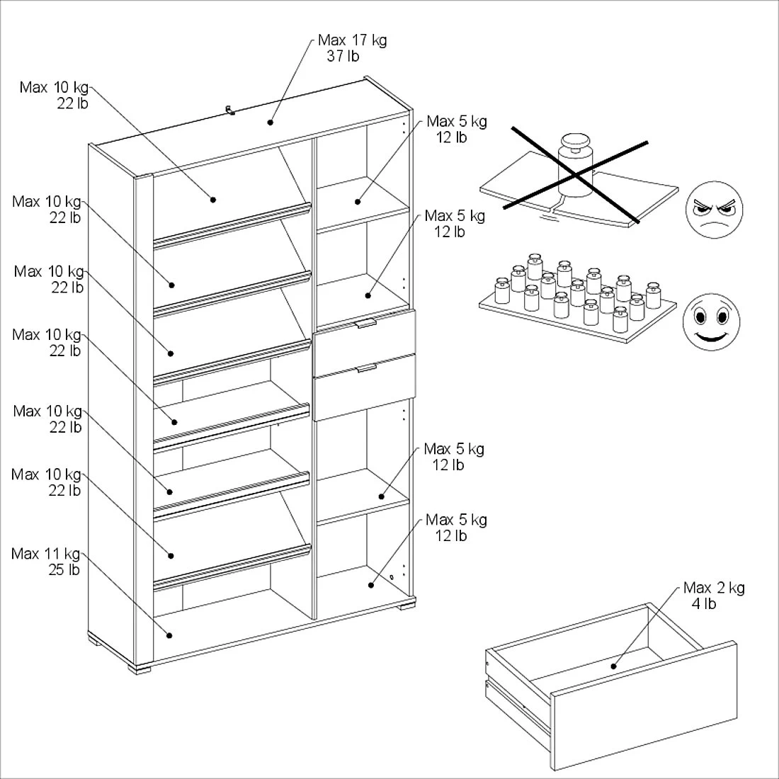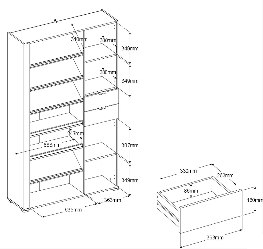 - 2 Einlegeböden / 4 geschlossene Fächer