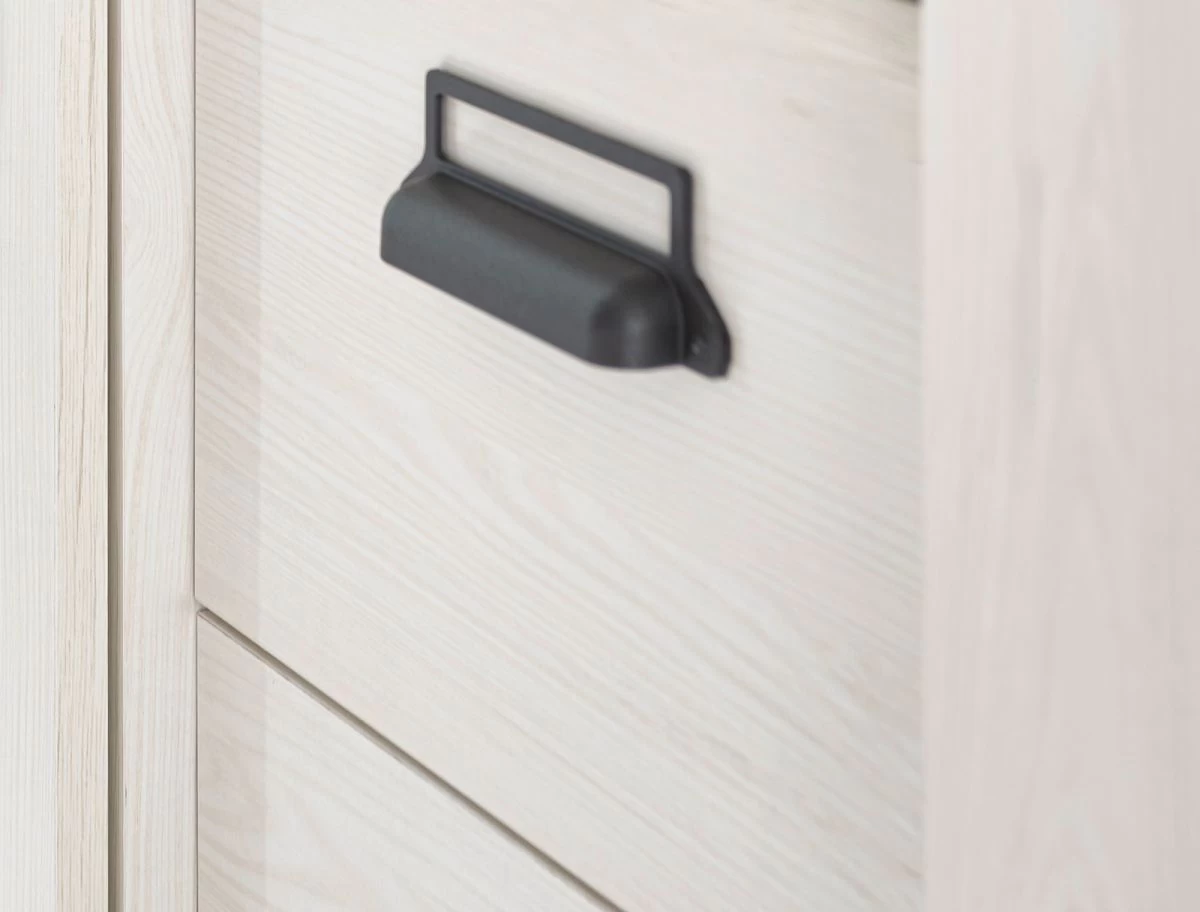 Schaffen Sie mit dem Schuhschrank „Stove“ in weiß Pinie Dekor und anthrazit (51 x 201 cm) Ordnung in Ihrem Flur. Der schmale Schuhschrank überzeugt mit einem Schubkasten, einer Klappe und einer Tür, die Sie links oder rechts befestigen können. Es stehen Ihnen 5 Stauraumfächer für Schuhe zur Verfügung, kleinere Utensilien finden ihren Platz in der Schublade. Das Flurmöbel ist hochwertig ausgestattet, denn neben Metallgriffen und einem Gasdruckdämpfer verfügen Türen und Schubladen über eine integrierte Soft-Close-Funktion. Zeitlos eleganter Landhausstil mit dekorativen Apothekergriffen für Ihr Zuhause.