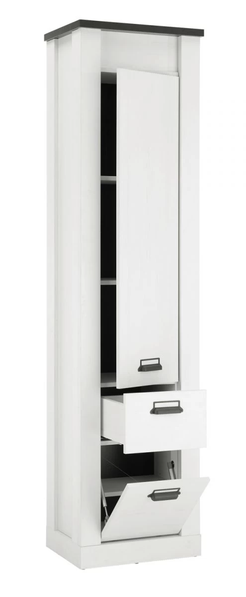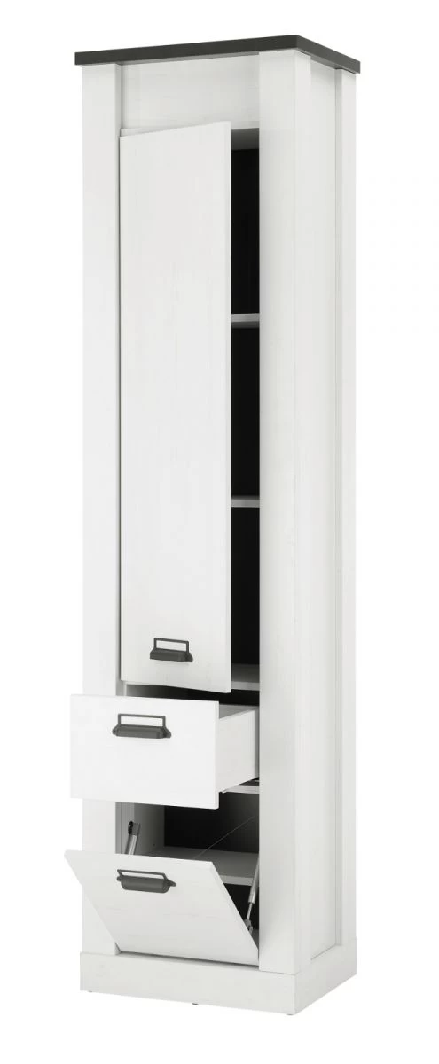 Schuhschrank „Stove“, weiß Pinie und anthrazit, 51 x 201 cm