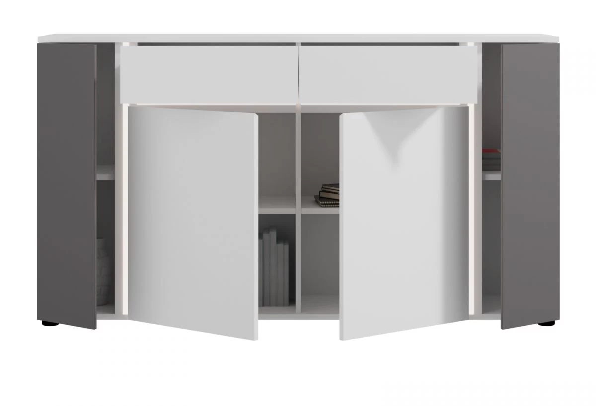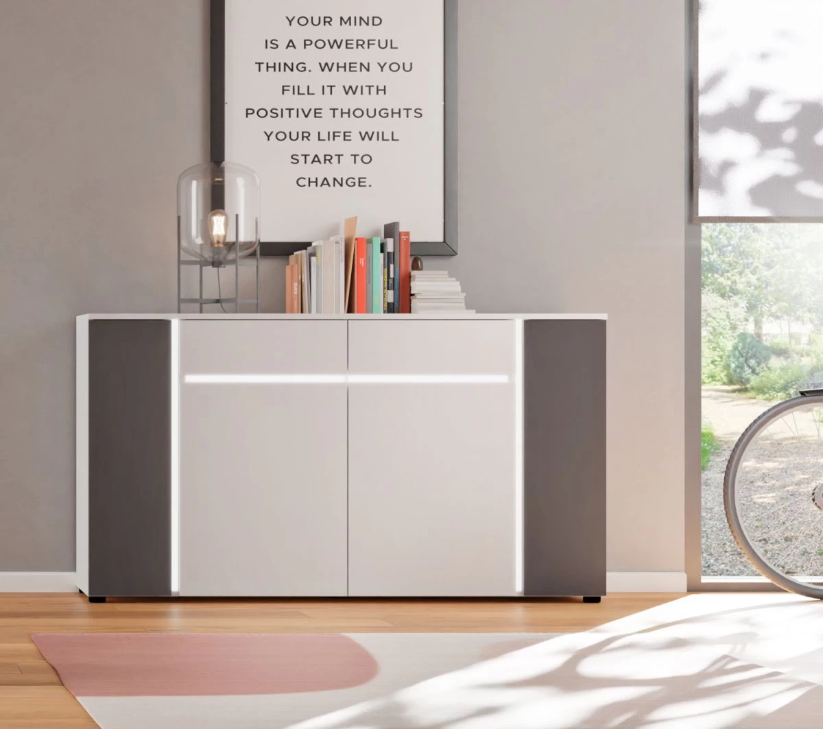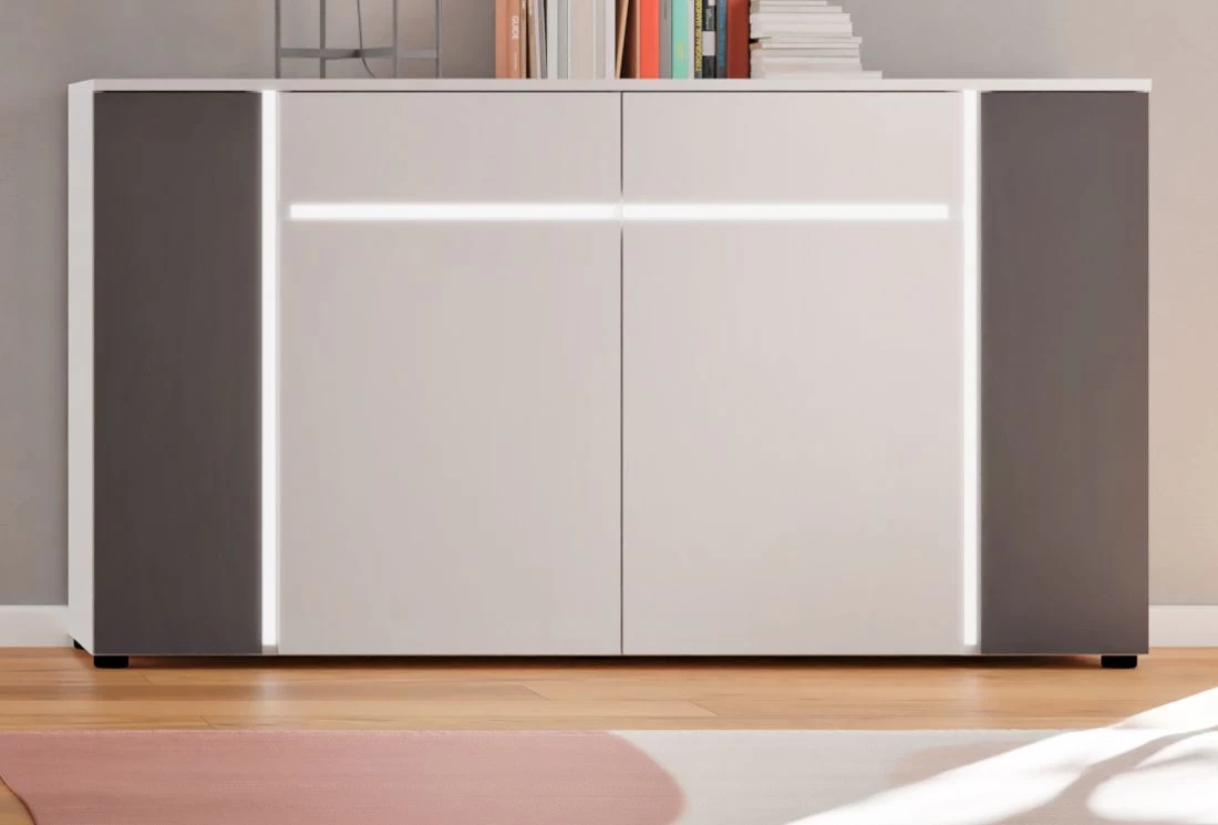 Sideboard „Kato“, weiß und grau, inkl. Frontbeleuchtung, 150 x 84 cm