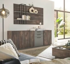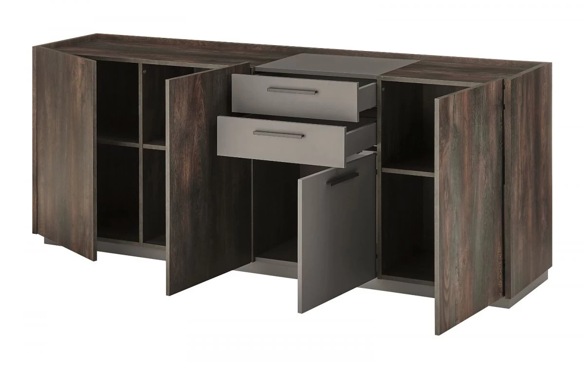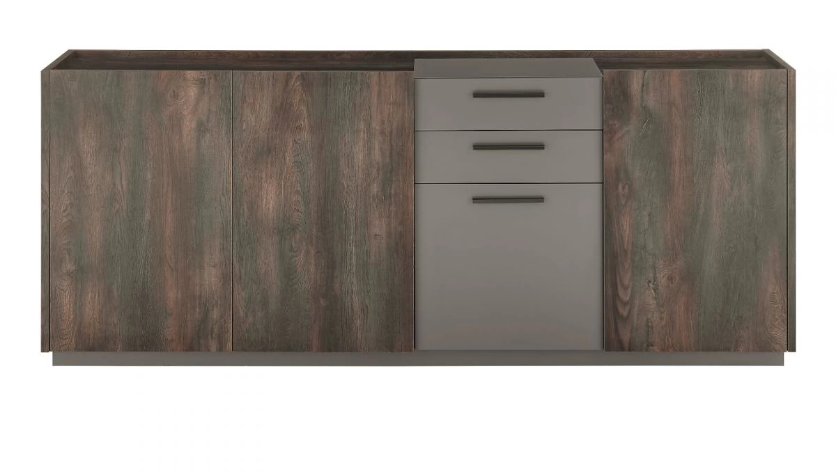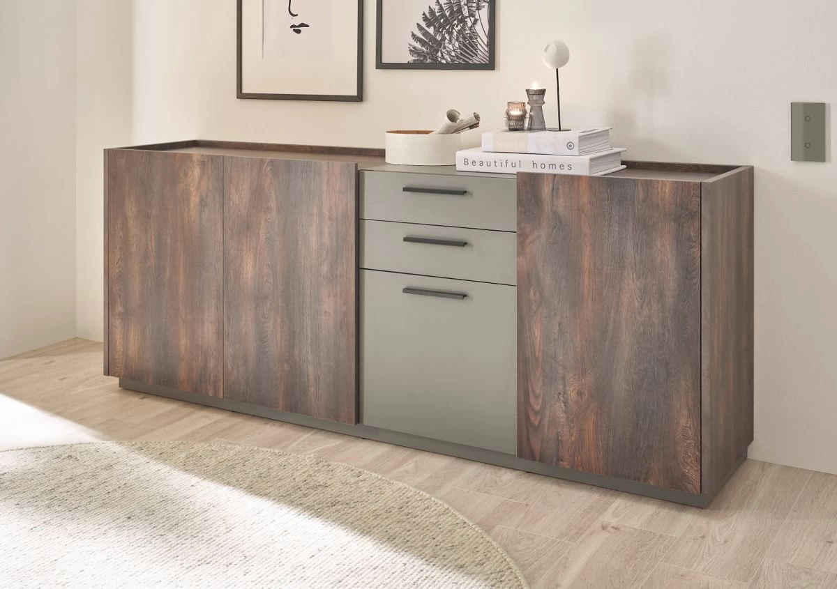 Sideboard „Piano“, Thermo Eiche Dekor und grau, 200 x 80 cm