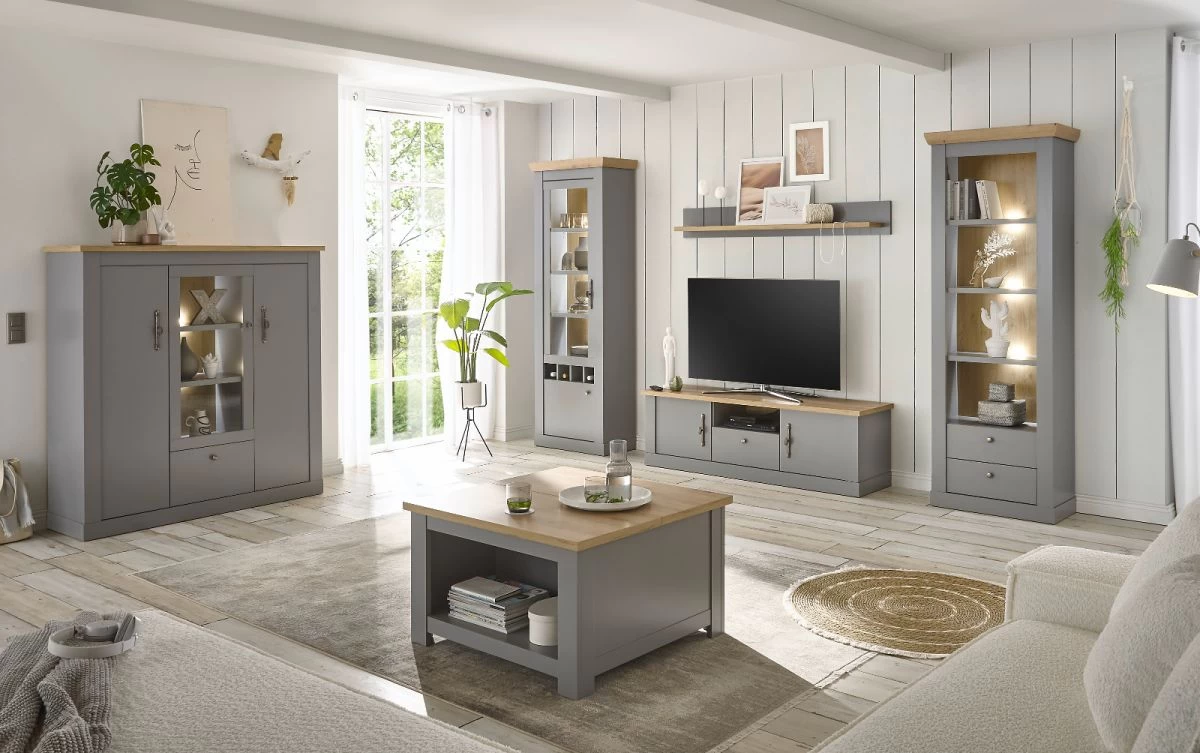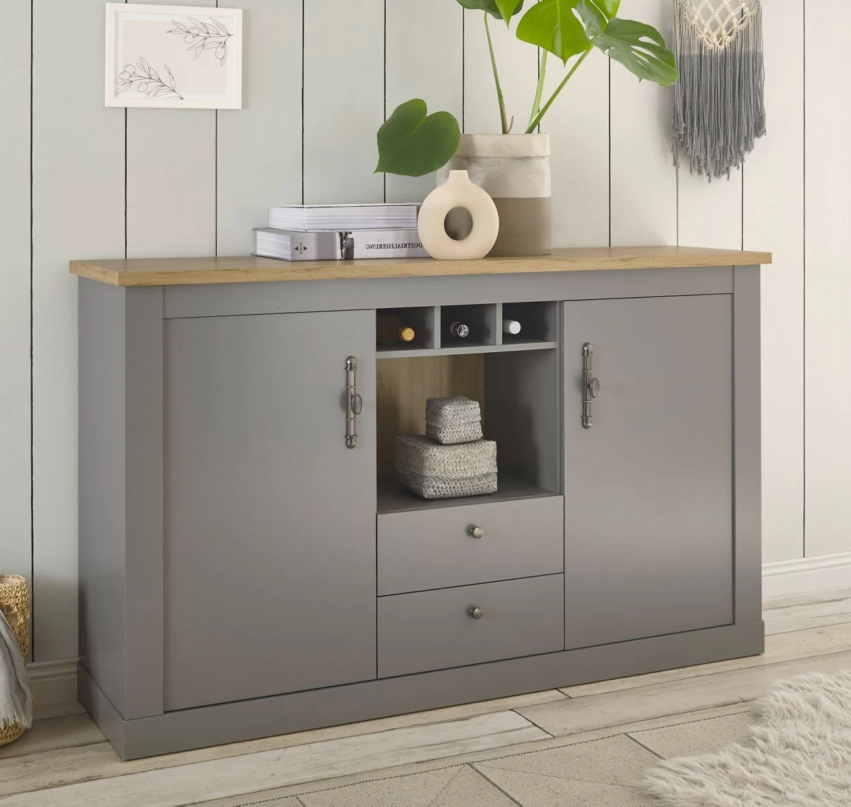 Sideboard „Rideau“, grau und Artisan Eiche Dekor, Landhausstil, 166 x 100 cm
