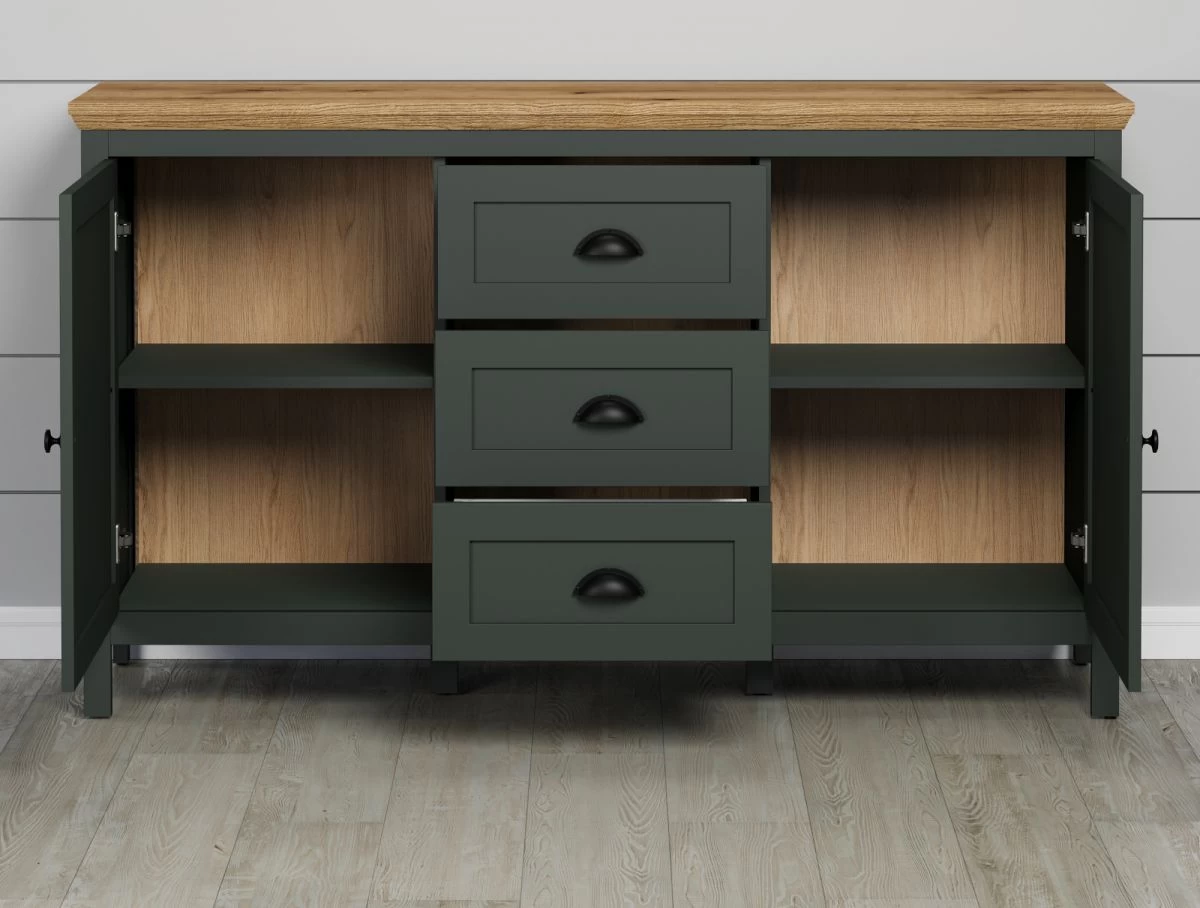 Sideboard „Stanton“, grün und Evoke Eiche Dekor, Landhausstil, 146 x 86 cm