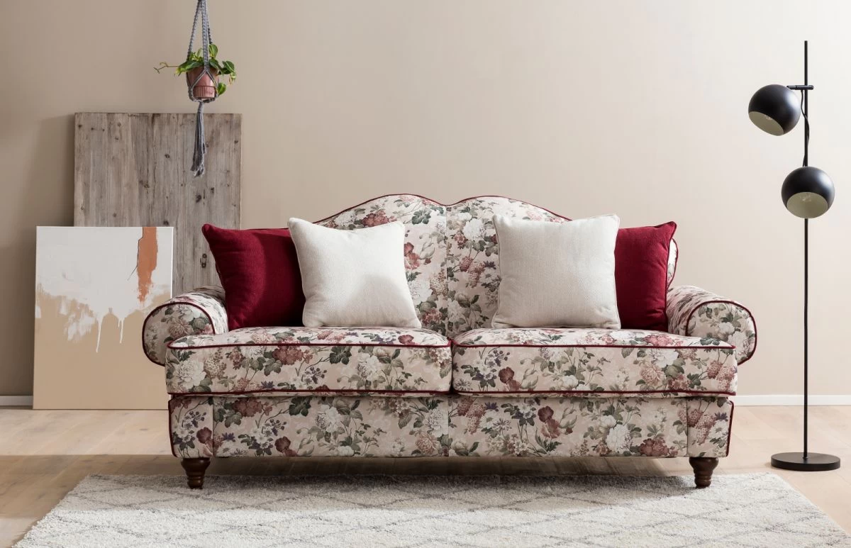 Lassen Sie sich von unserem exquisiten Sofa „Elita“ begeistern! Mit einer Länge von 200 cm bietet es ausreichend Platz für drei Personen und verleiht Ihrem Wohnzimmer im charmanten Landhausstil einen Hauch von Eleganz. Der Bezug aus hellbeigem Flachgewebe mit floralem Muster ist nicht nur ein optischer Hingucker, sondern auch äußerst strapazierfähig. Genießen Sie höchsten Sitzkomfort dank der Polsterung mit Bonell Federkern und Komfortschaum. Die Abriebsfestigkeit, Pillingbildung und Scheuerbeständigkeit sind absolut top, sodass Sie lange Freude an diesem Sofa haben werden. Auch die Rückseite der Couch ist mit dem Originalbezug versehen, sodass es frei im Raum platziert werden kann. Die gedrechselten Massivholzfüße in Braun verleihen dem Sofa eine edle Note. Die Armlehnen runden das Gesamtbild perfekt ab. Hergestellt wird das Sofa „Elita“ von Furn.Design, einem renommierten Hersteller von Möbeln höchster Qualität. Wir laden Sie herzlich dazu ein, das einzigartige Sofa „Elita“ zu entdecken und sich von seinem Charme verzaubern zu lassen. Holen Sie sich jetzt diese exklusive 3-Sitzer Couch nach Hause und machen Sie Ihr Wohnzimmer zu einem Ort der Gemütlichkeit und Eleganz!