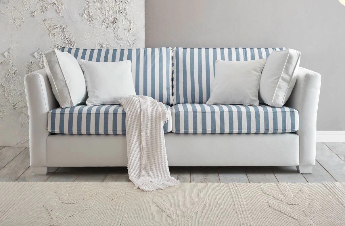 Sofa „Hooge“, creme und blau, 2,5-Sitzer, Landhausstil, 200 cm