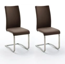 2 X Stuhl Arco In Braun Kunstleder Und Edelstahl Freischwinger Flachrohr Esszimmerstuhl 2er Set