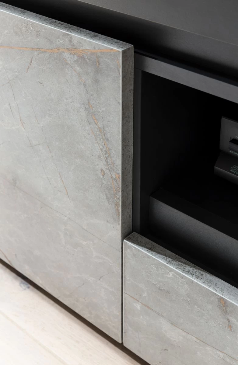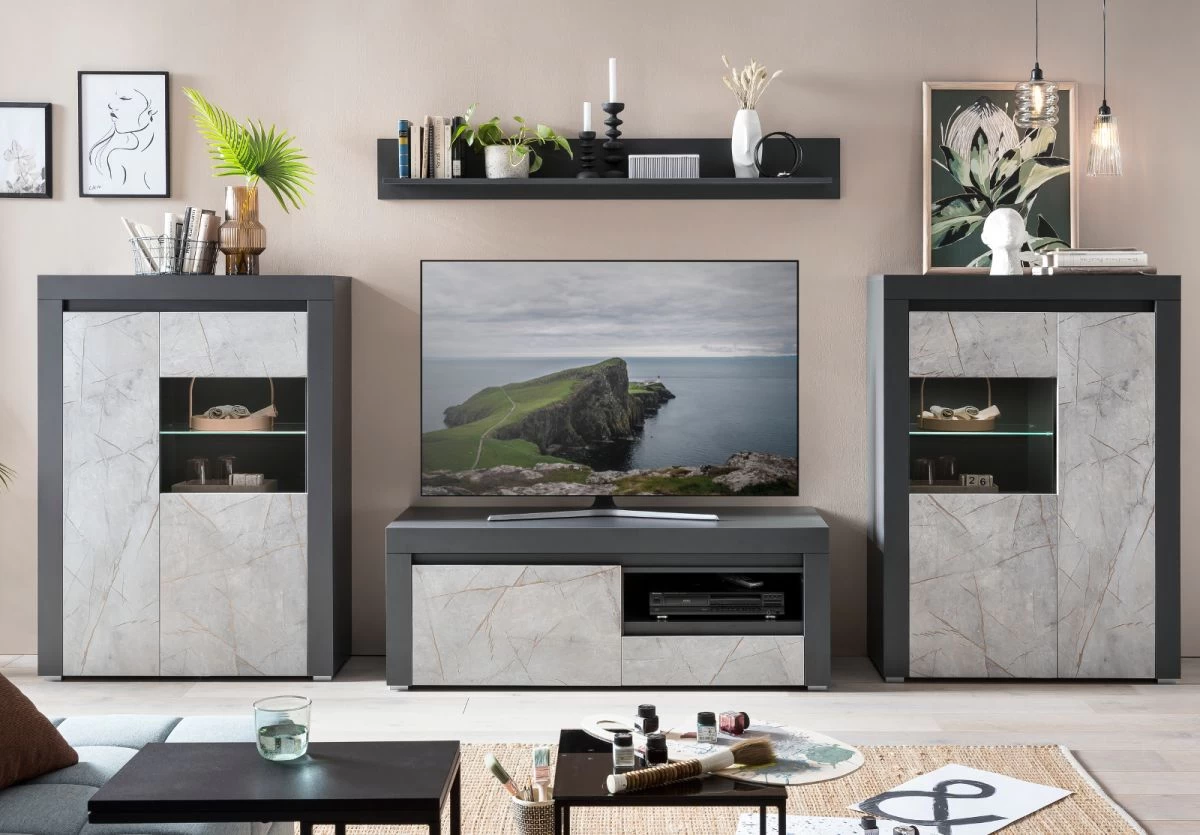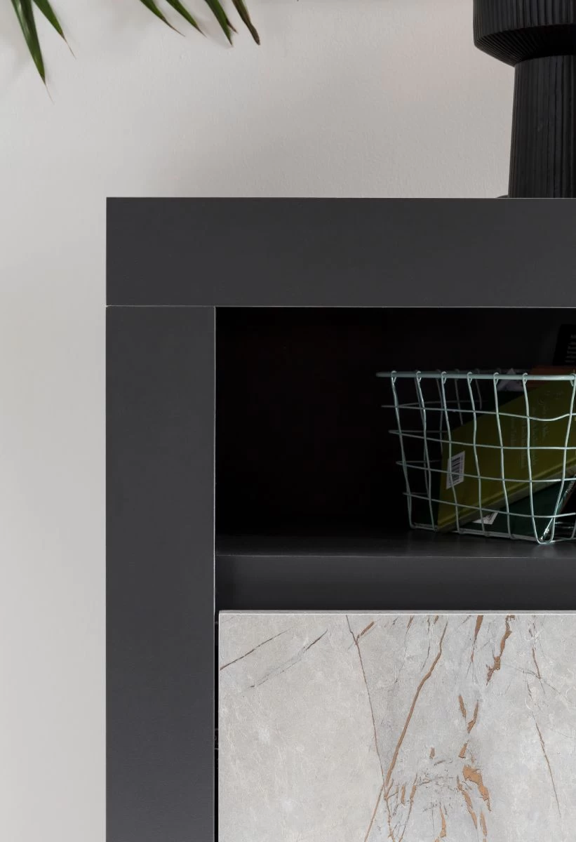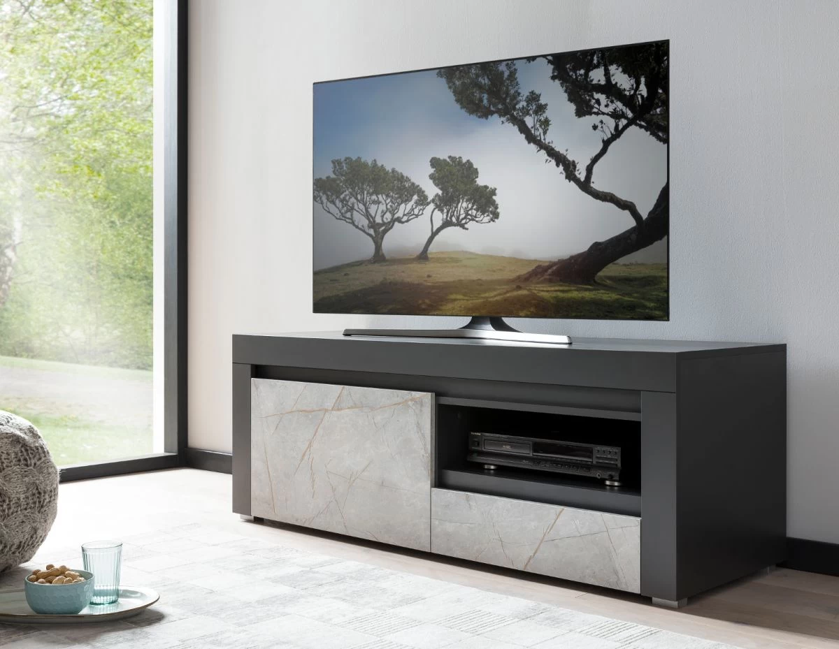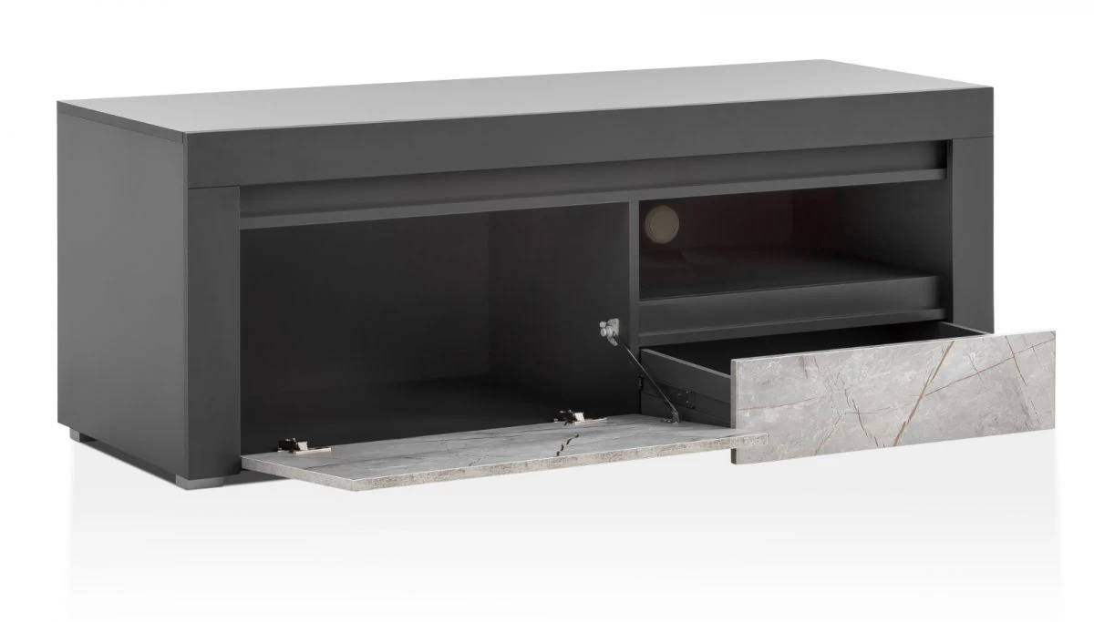 TV-Lowboard „Airen“, anthrazit und Marmor Optik grau, 140 x 50 cm