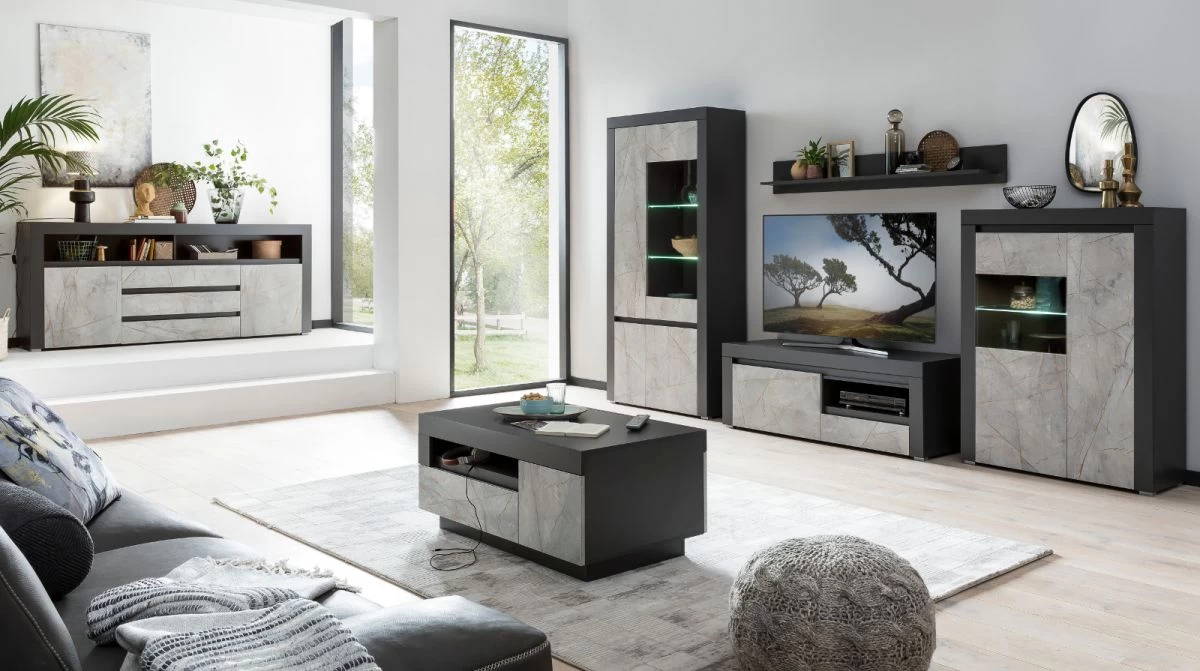 Das TV-Lowboard „Airen“ in anthrazit und Marmor Optik grau (140 x 50 cm) lässt sich perfekt in Ihr Zuhause integrieren. Damit Kabel gut verstaut werden können, ist das TV-Element mit einem Kabeldurchlass ausgestattet. Zu diesem TV-Möbel gehört ein offenes Ablagefach als integriertes Extra. Das Modell „Airen“ ist mit einem Schubkasten und einer Klappe ausgestattet. Es kann auch optisch durch sein elegantes Design begeistern. Das TV-Lowboard leistet durch das FSC®-Gütesiegel einen Beitrag zu mehr Nachhaltigkeit. Dank der unempfindlichen Beschaffenheit erweist sich das Möbelstück in den Dekoren Anthrazit und Marmor Optik Grau als äußerst funktional. Sie weist eine Gesamthöhe von 50 cm, eine Breite von 140 cm und eine Tiefe von 50 cm auf. Darüber hinaus steht das Modell „Airen“ in weiteren Größenausführungen zur Auswahl. Dieses attraktive TV-Lowboard ist unverzichtbar für schöne Fernsehabende.